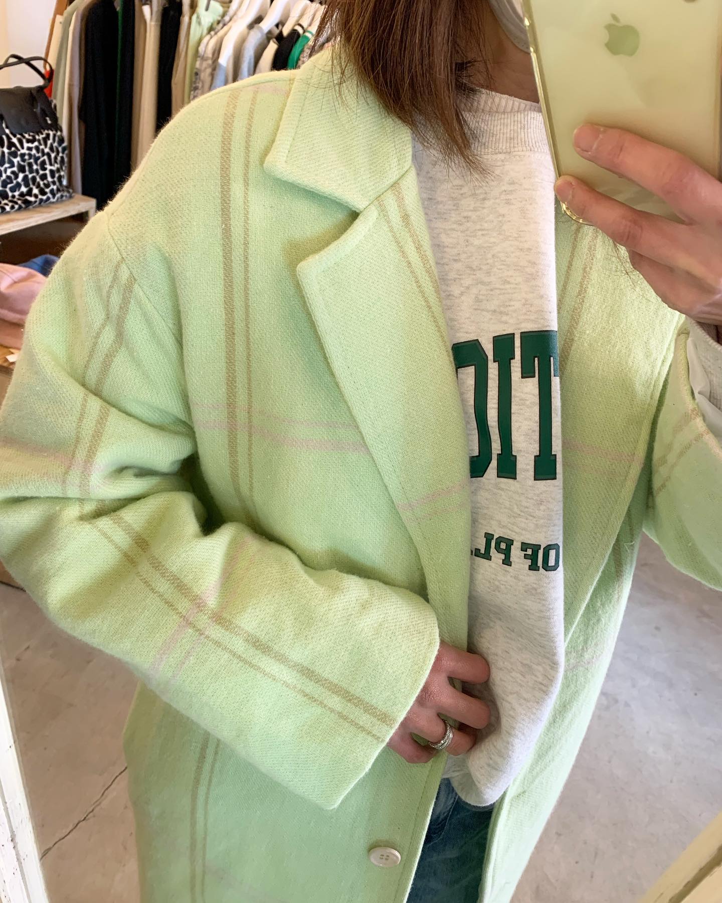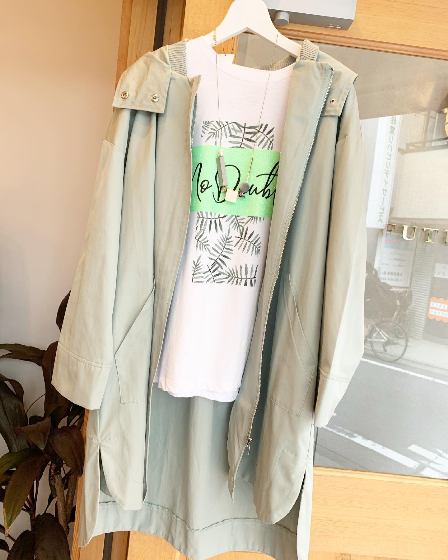 首回りのリブがニクイ〜 ニュアンスカラーのかわいいコート😍 グリーンでまとめてみました🍀 #futuro#outfit #ootd#italy#セレクトショップ#インポートセレクトショップ#コーデ#経堂#世田谷区