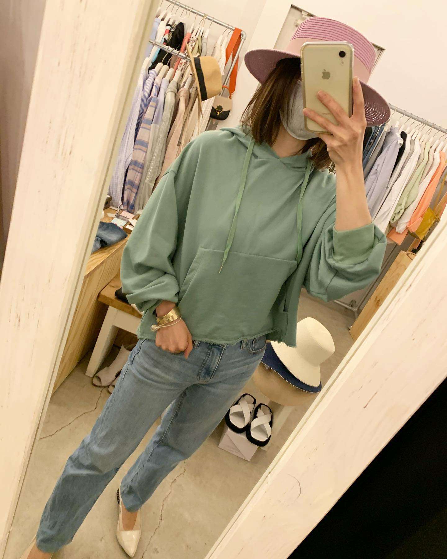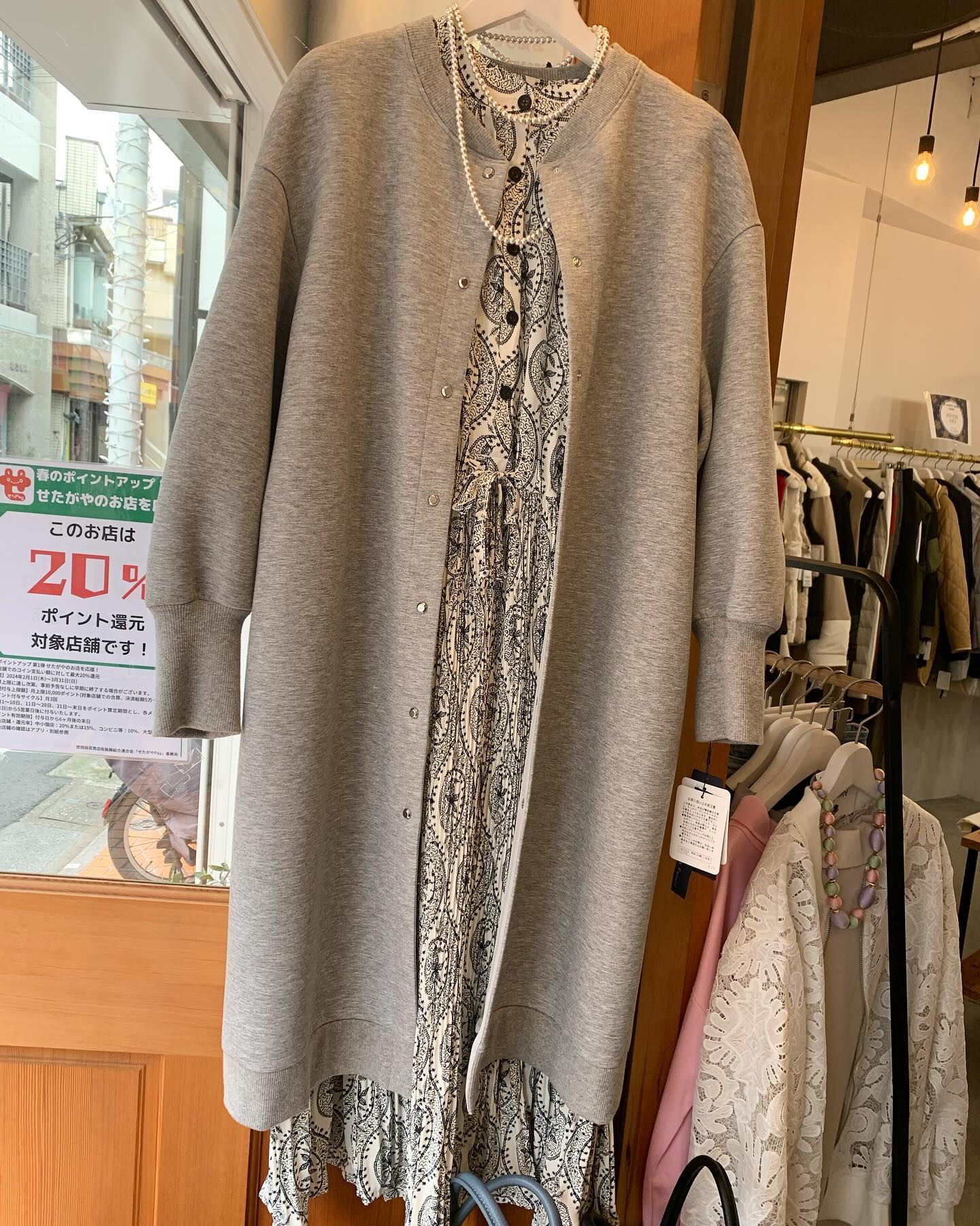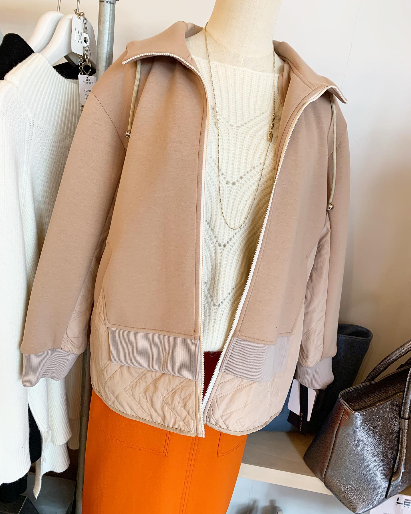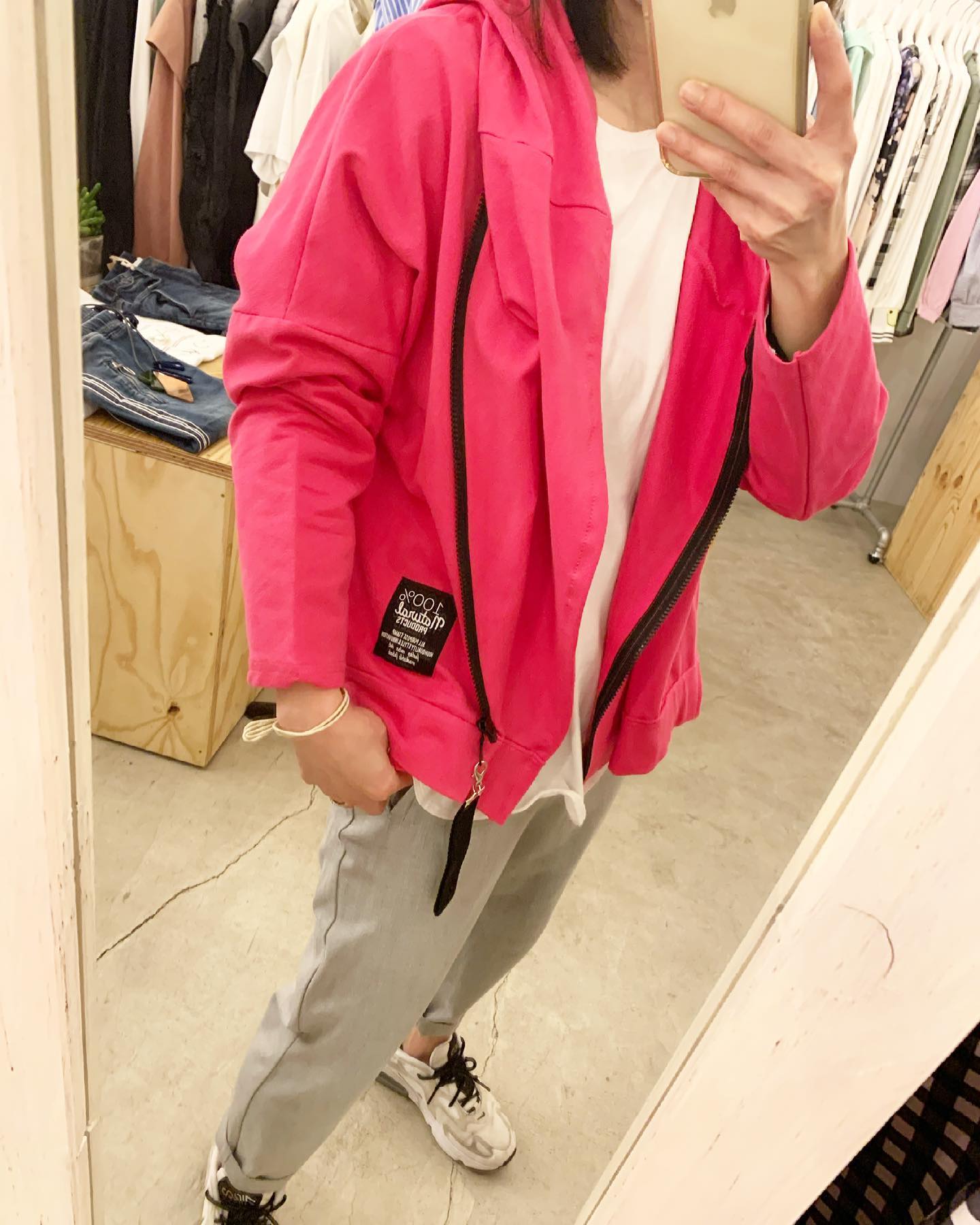 今日はあったか〜🌸 ナナメジップのパーカータイプ 🌸がキレイ✨ピンクが着たくなりますね #futuro#ootd#outfit #コーデ#セレクトショップ#インポートセレクトショップ#世田谷区#経堂