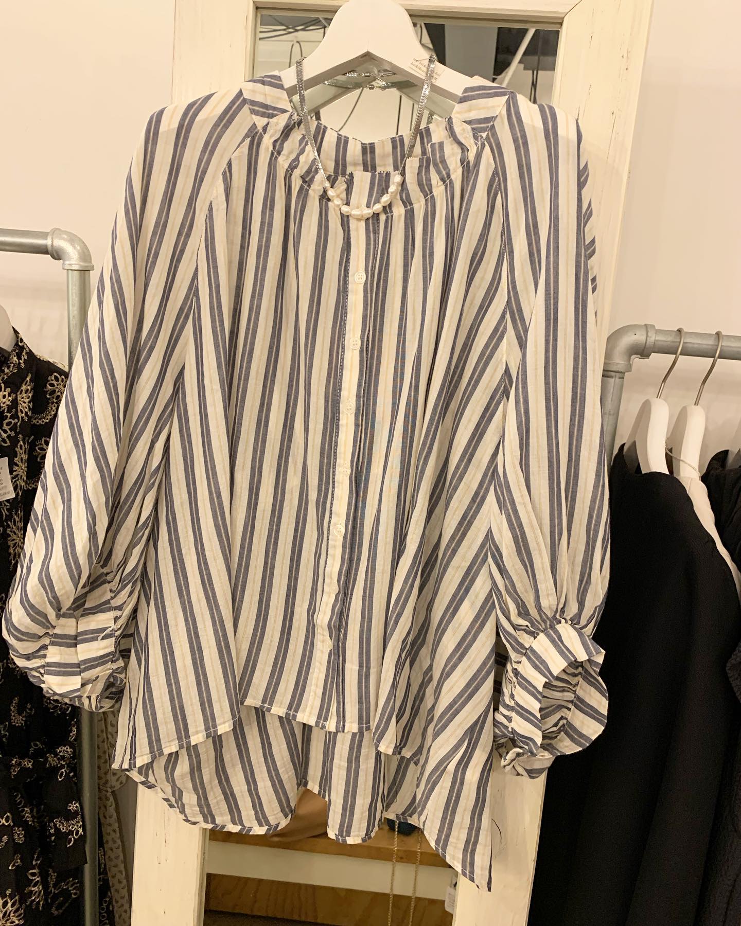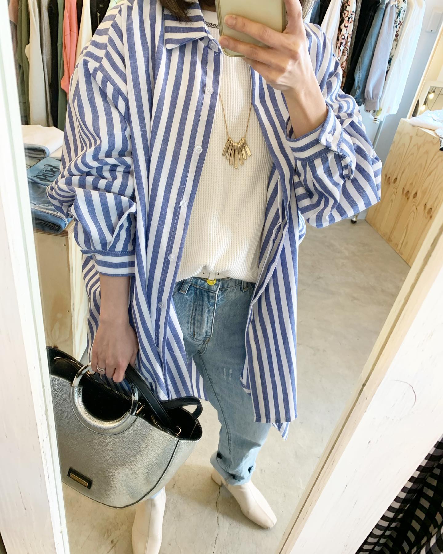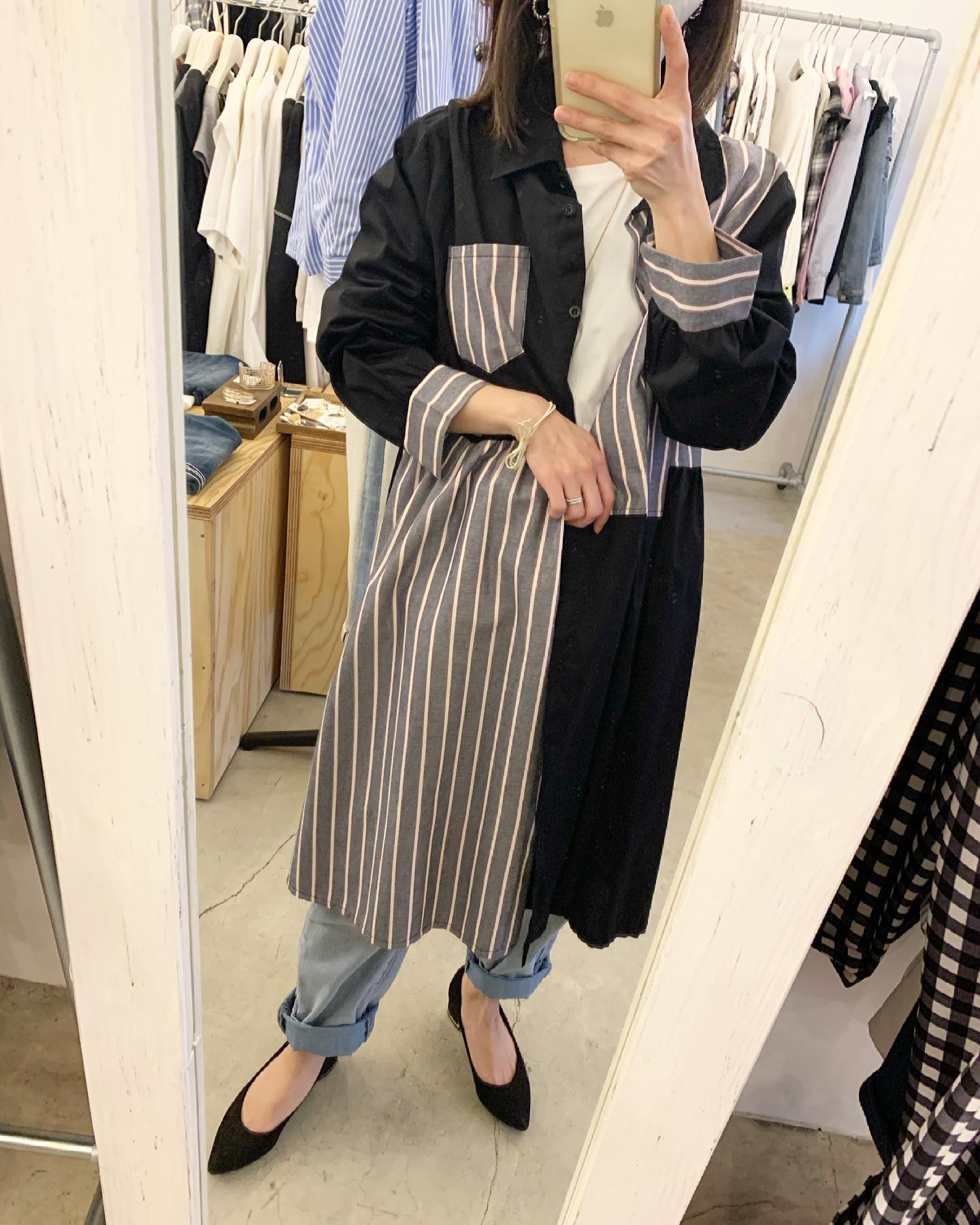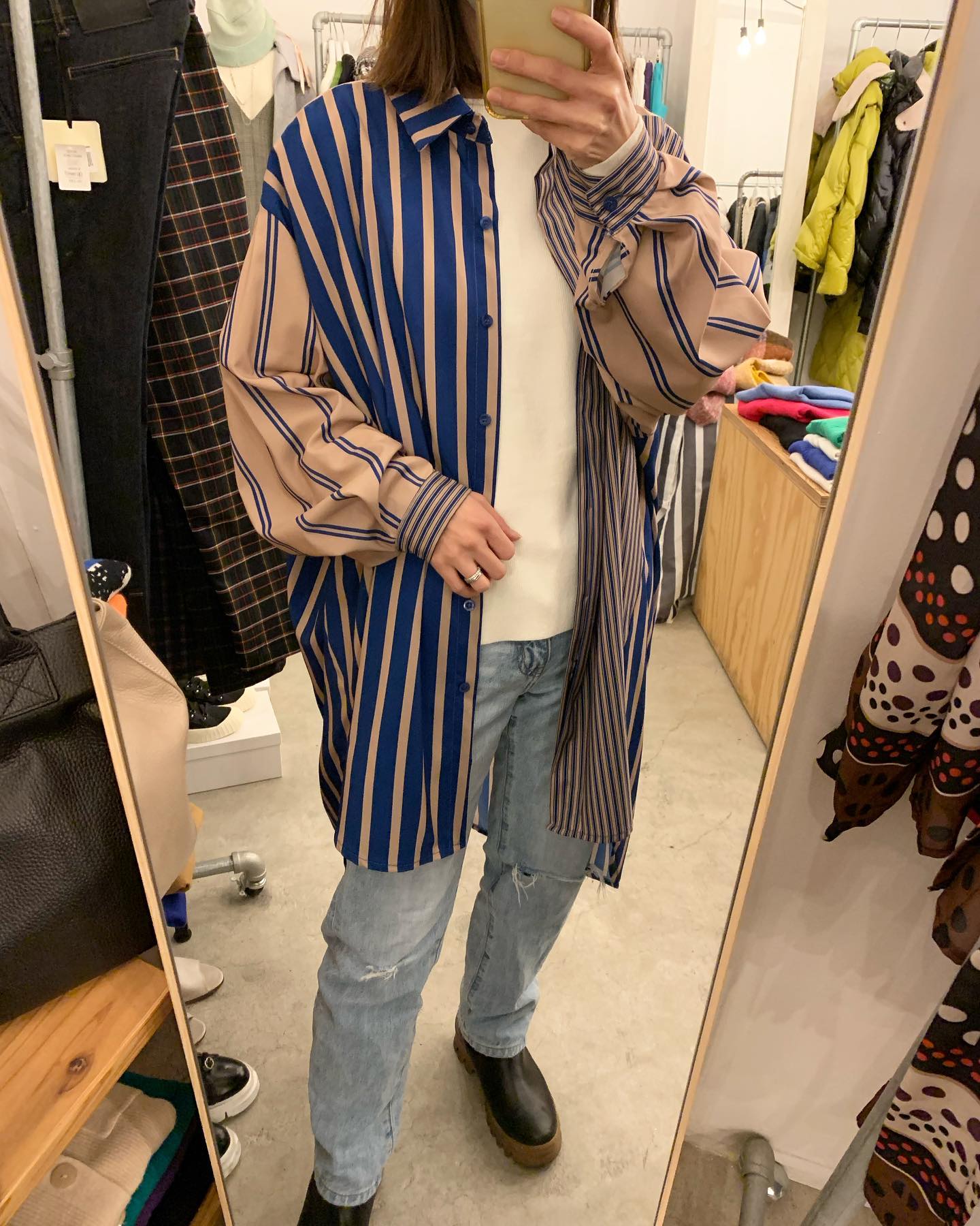 太めストライプ ロングシャツはなにかと便利アイテム✨ #futuro#ootd#outfit #コーデ#ストライプシャツ#セレクトショップ#インポートセレクトショップ#経堂#世田谷区