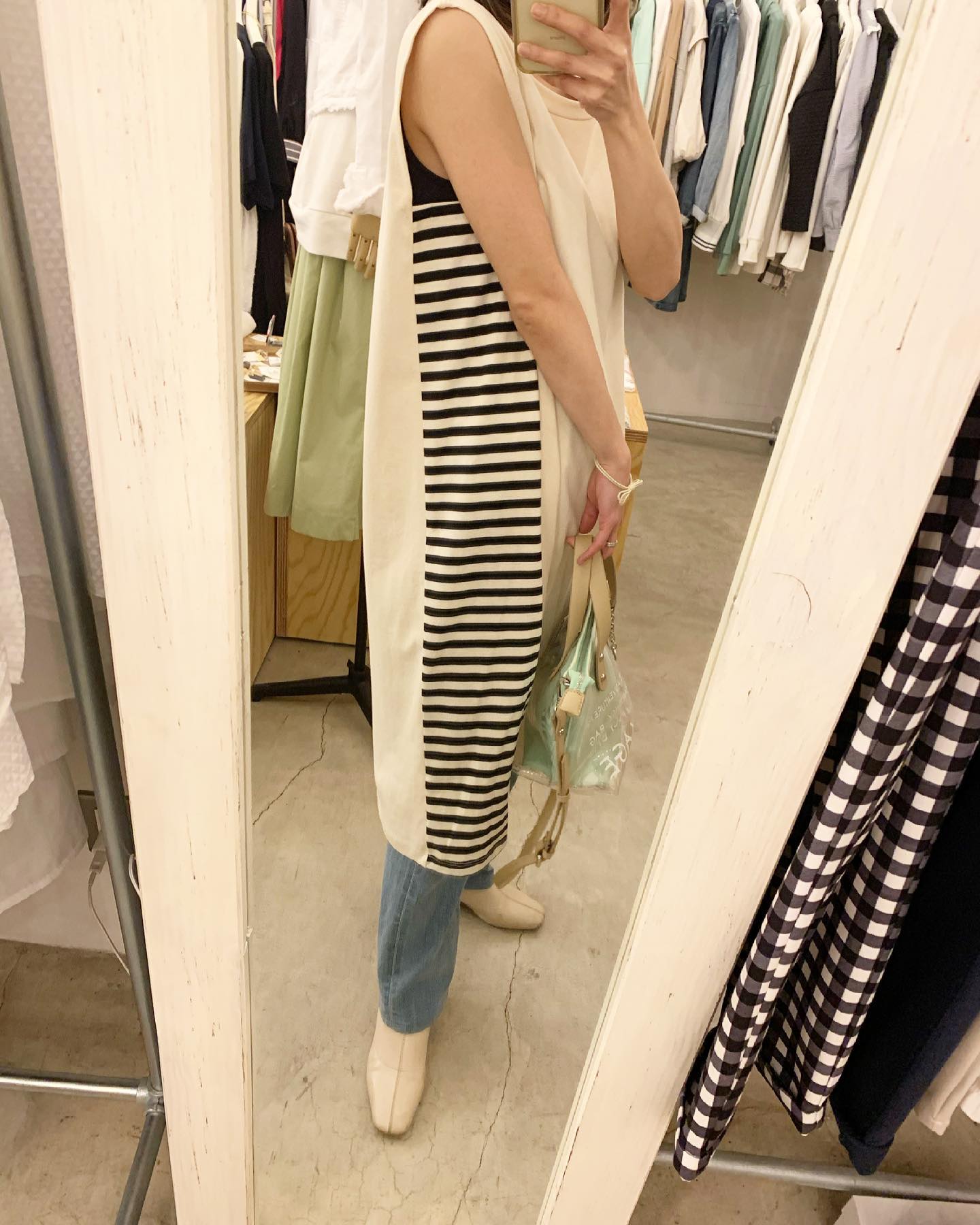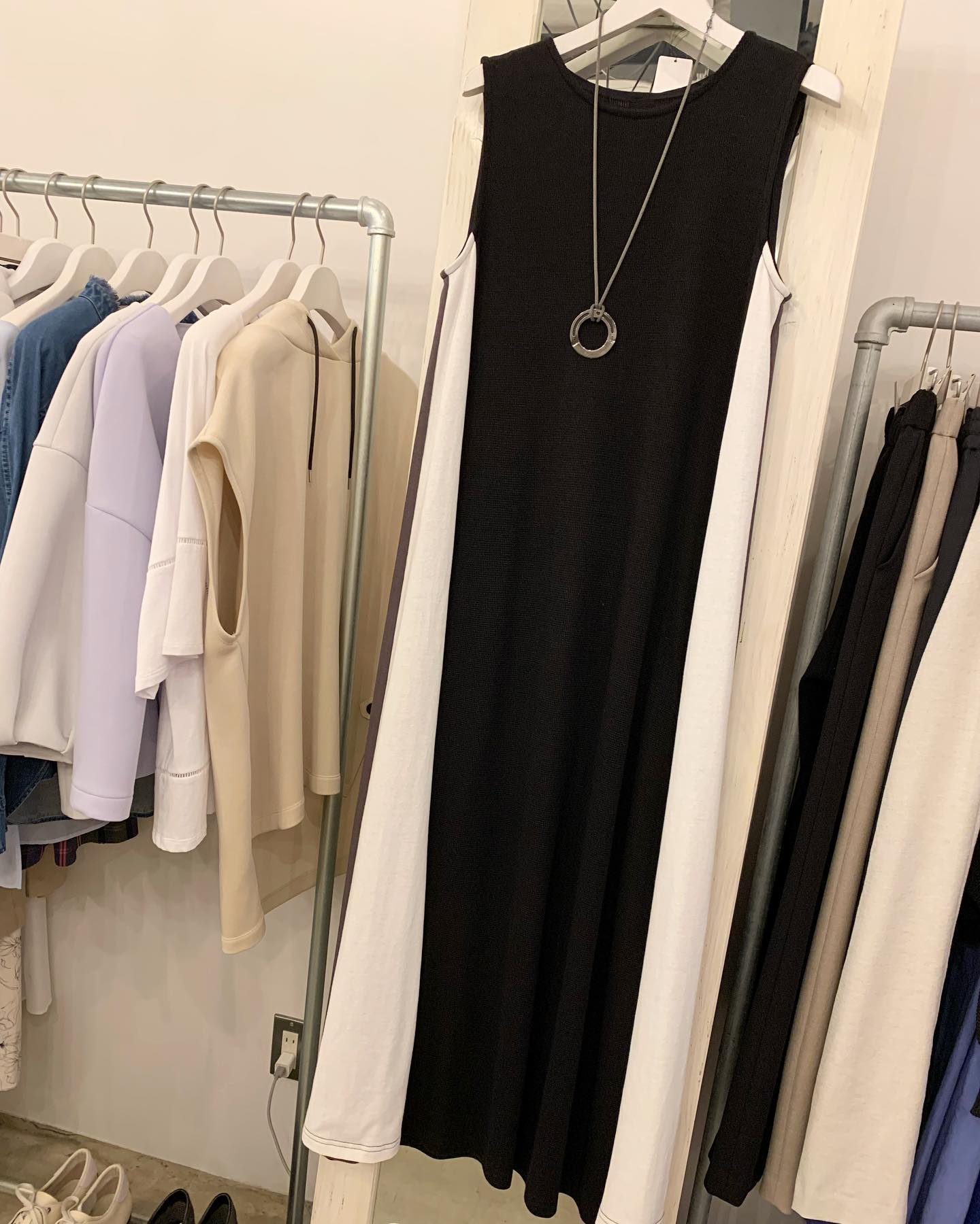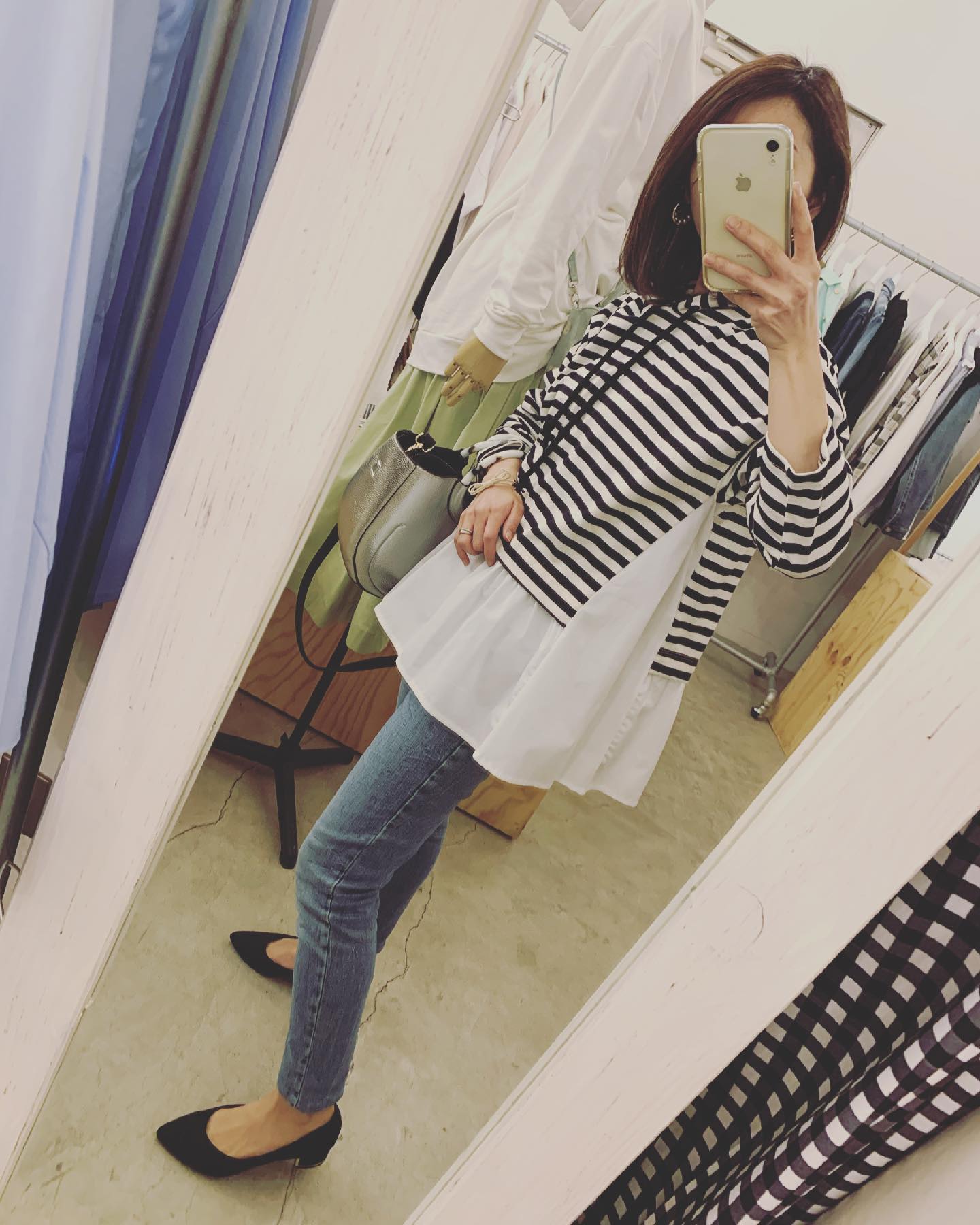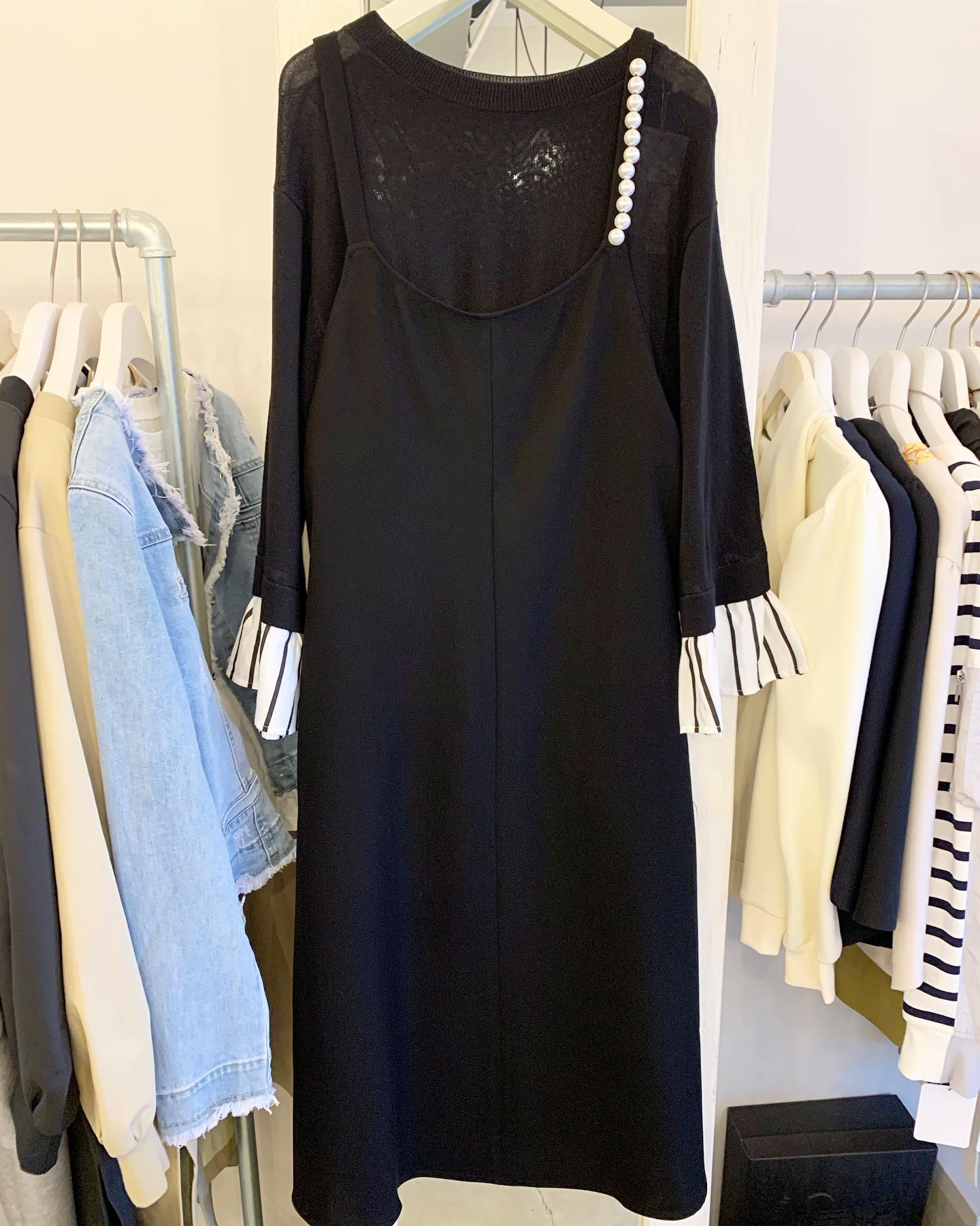 脇がボーダーのワンピ♡ 引き締め効果✨ ショルダーの長さが絶妙です。 #futuro#outfit #ootd#fashion #セレクトショップ#インポートセレクトショップ#コーデ#経堂#世田谷区