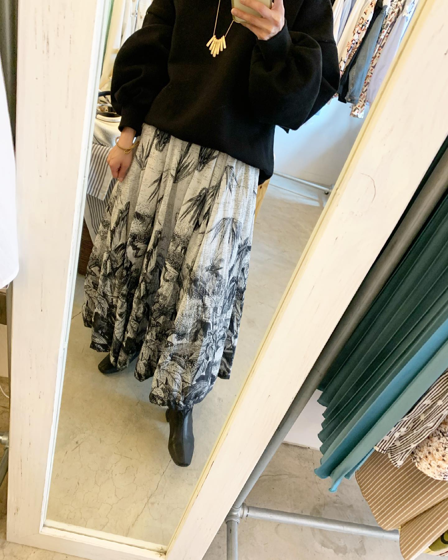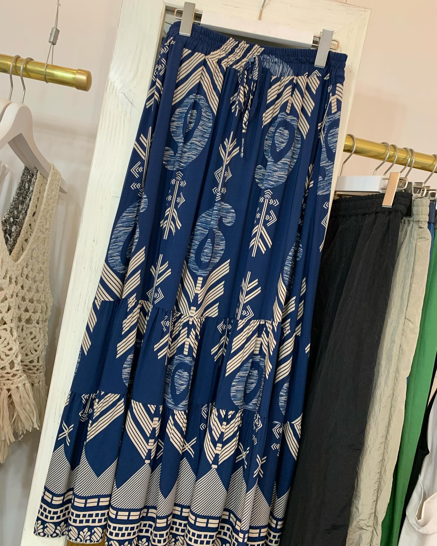 たっぷり生地を使ったリゾートなプリントのスカートです。 これ着てバカンス⛴に行きたい!! #futuro#ootd#outfit #セレクトショップ#インポートセレクトショップ#italy#経堂#世田谷区#コーデ#スカート
