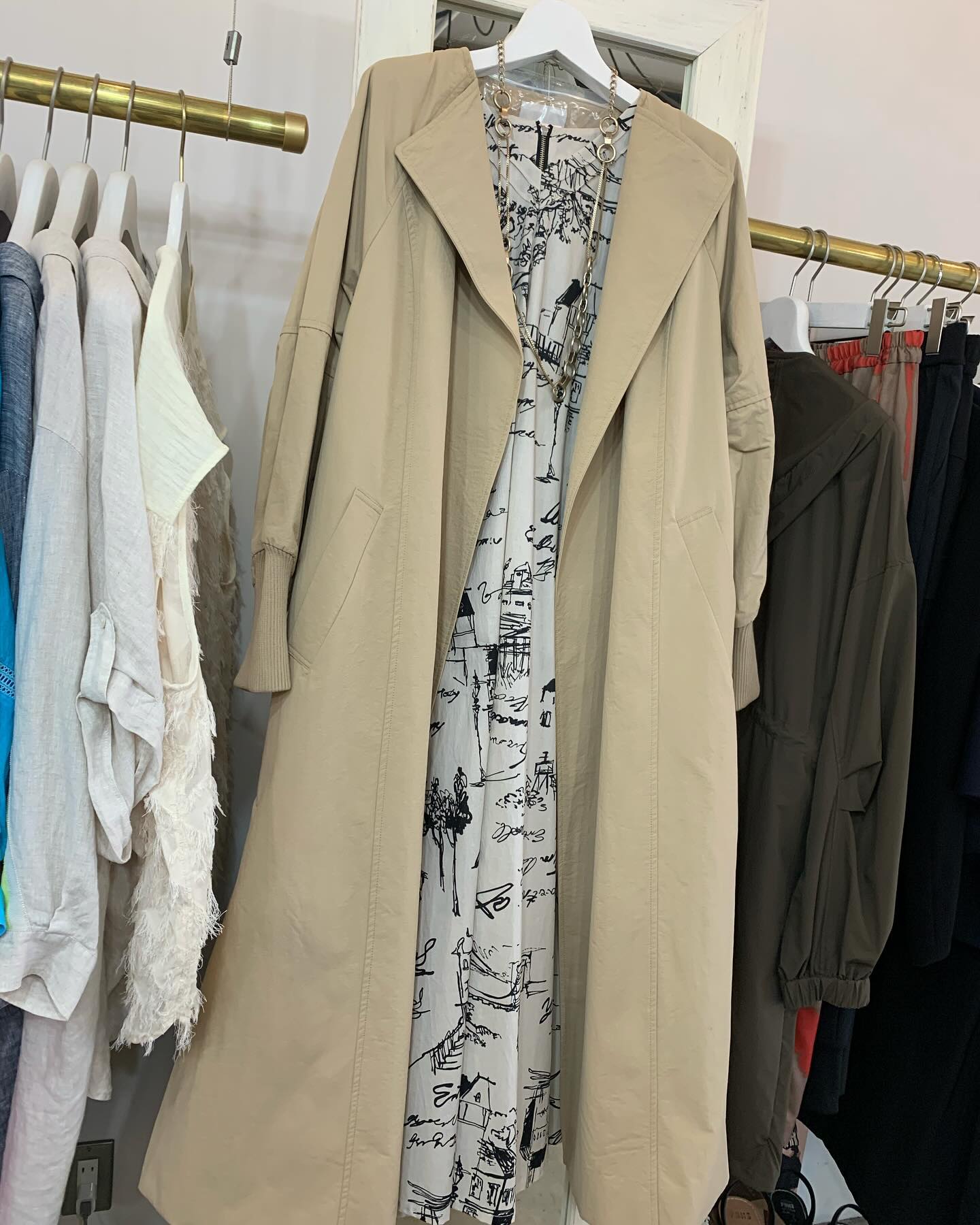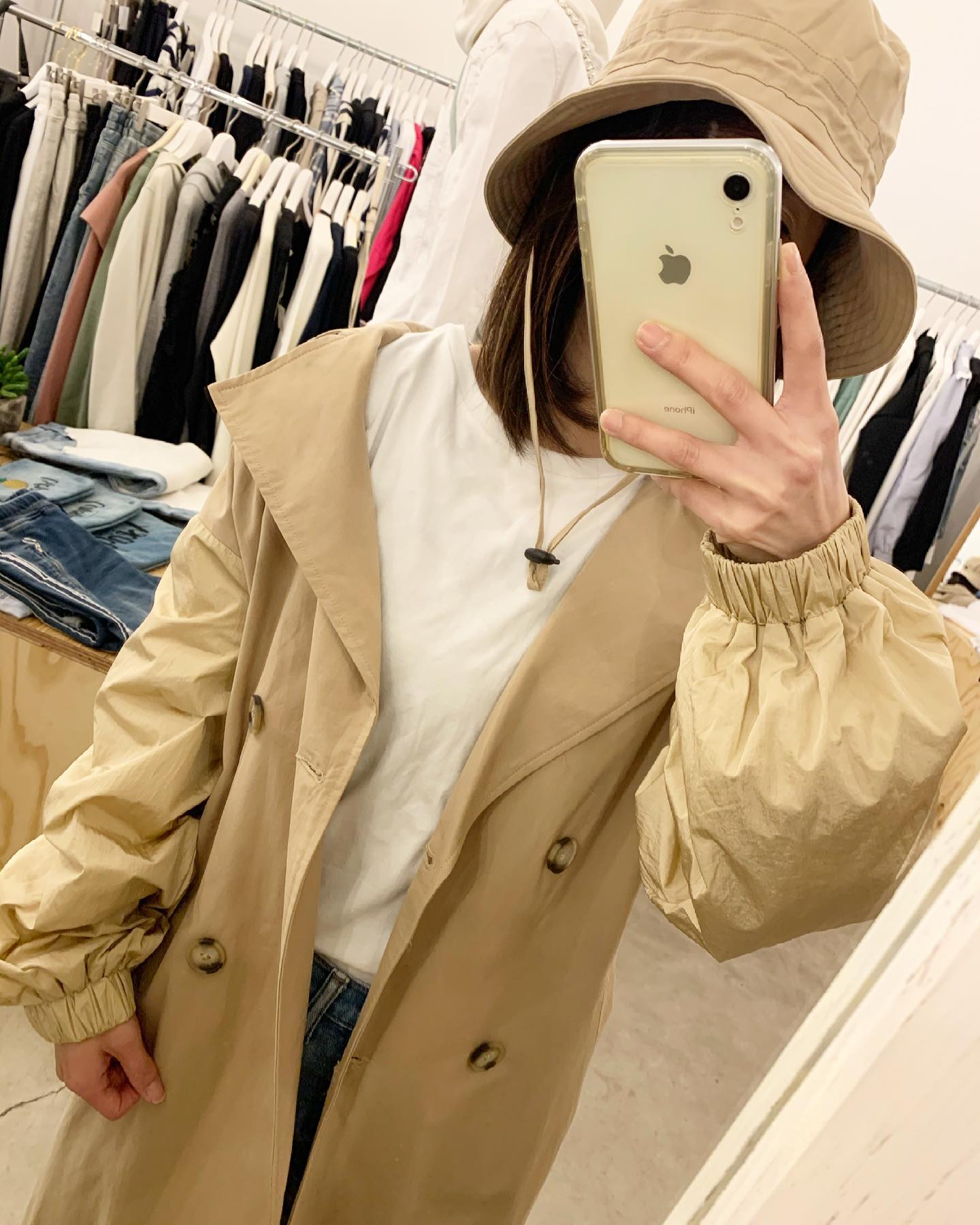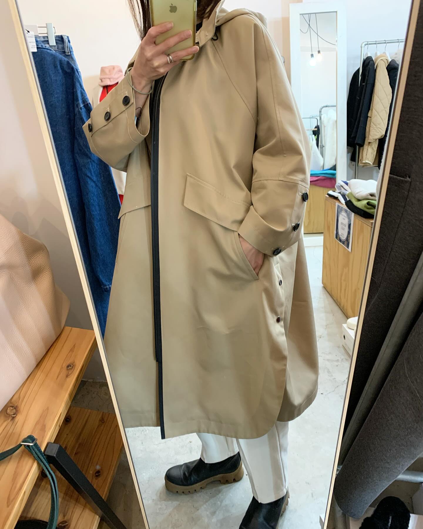異素材使いのトレンチコート🧥 オソロイハット付き♡ ハットもかわいい😍 #futuro#italy#outfit #ootd#fashion #コーデ#ママコーデ#セレクトショップ#インポートセレクトショップ#世田谷区#経堂
