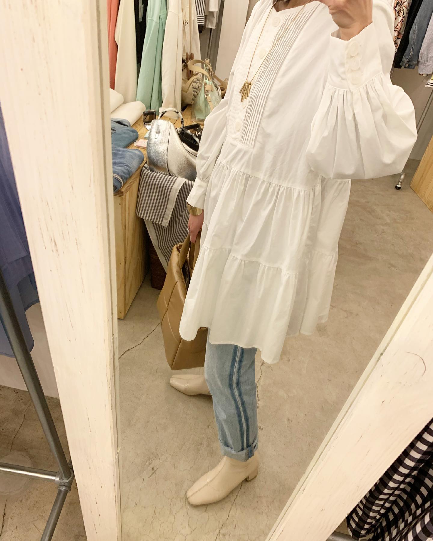 ふんわりチュニック プリーツあり袖ボリュームありティアードありの盛りだくさん #futuro#outfit #ootd#コーデ#fashion #セレクトショップ#インポートセレクトショップ#経堂#世田谷区