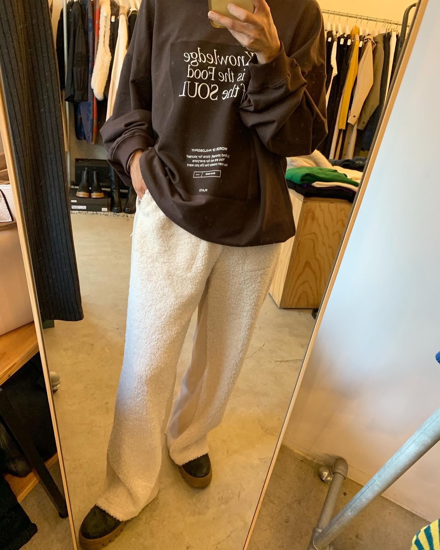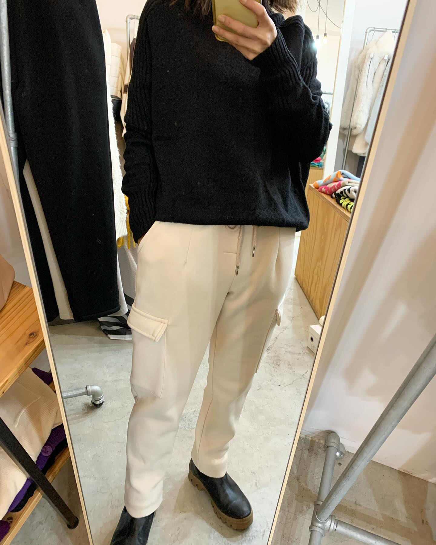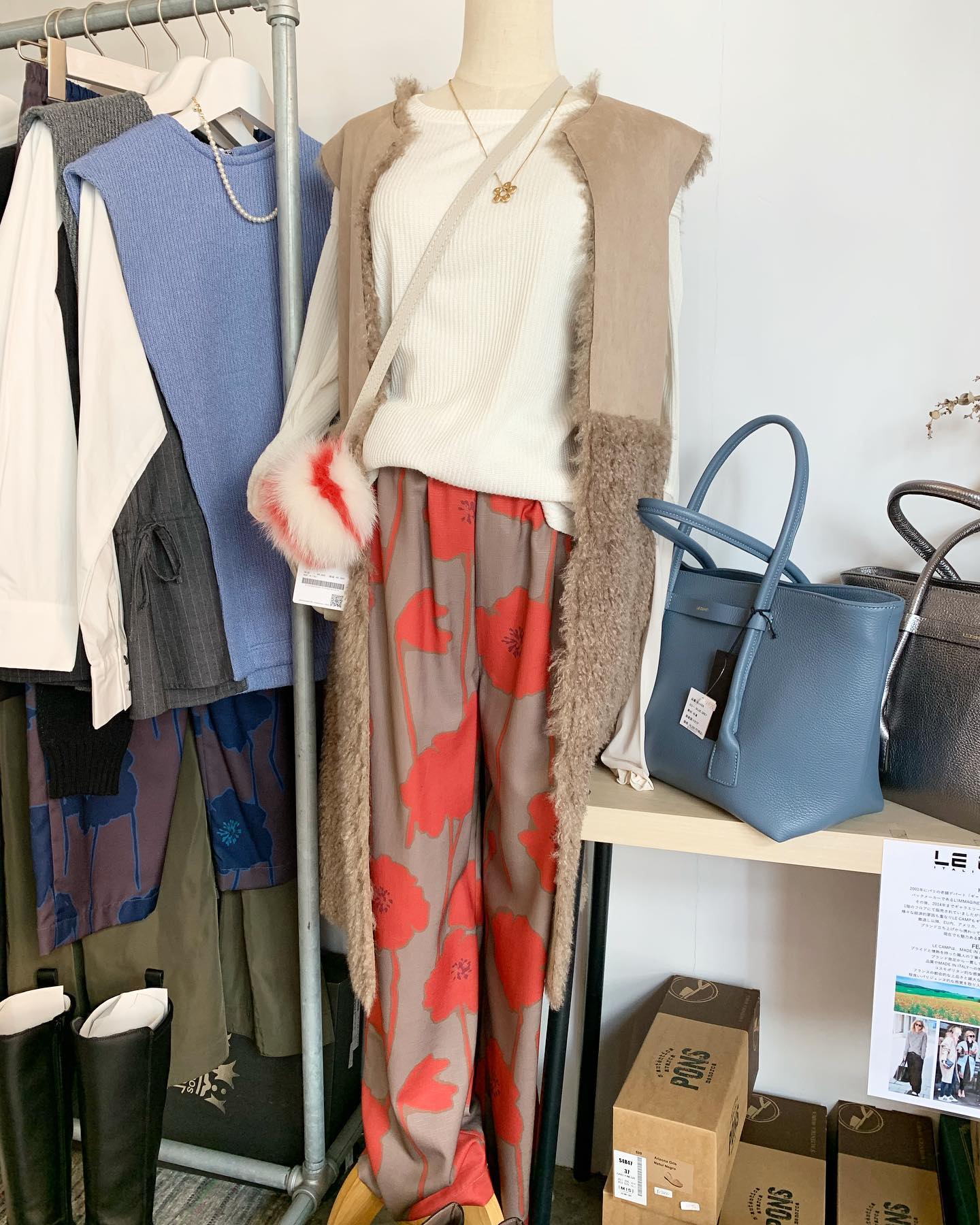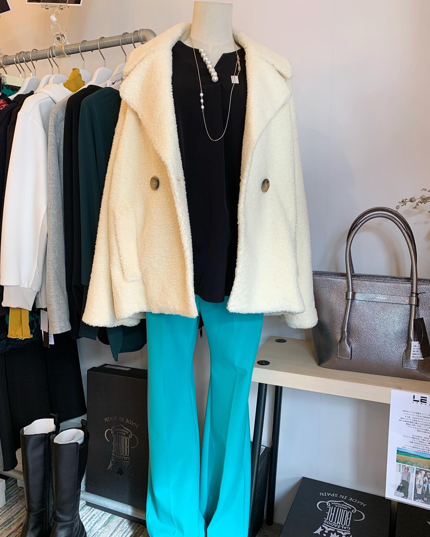 あったかボアパンツ✨ バックはフラノ素材でスッキリ #futuro#ootd#outfits #世田谷区#経堂#大人コーデ#カジュアルスタイル#セレクトショップ#インポートセレクトショップ