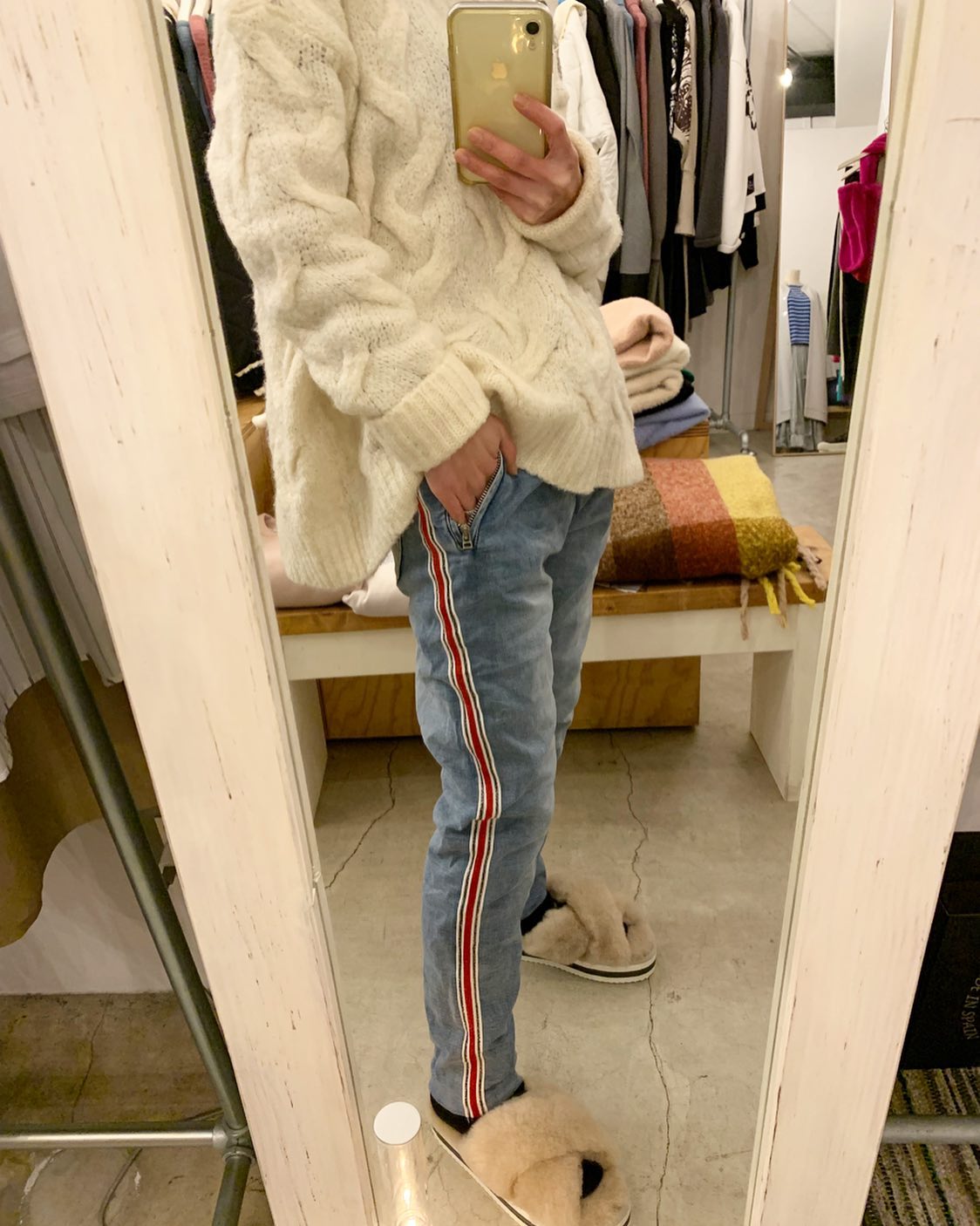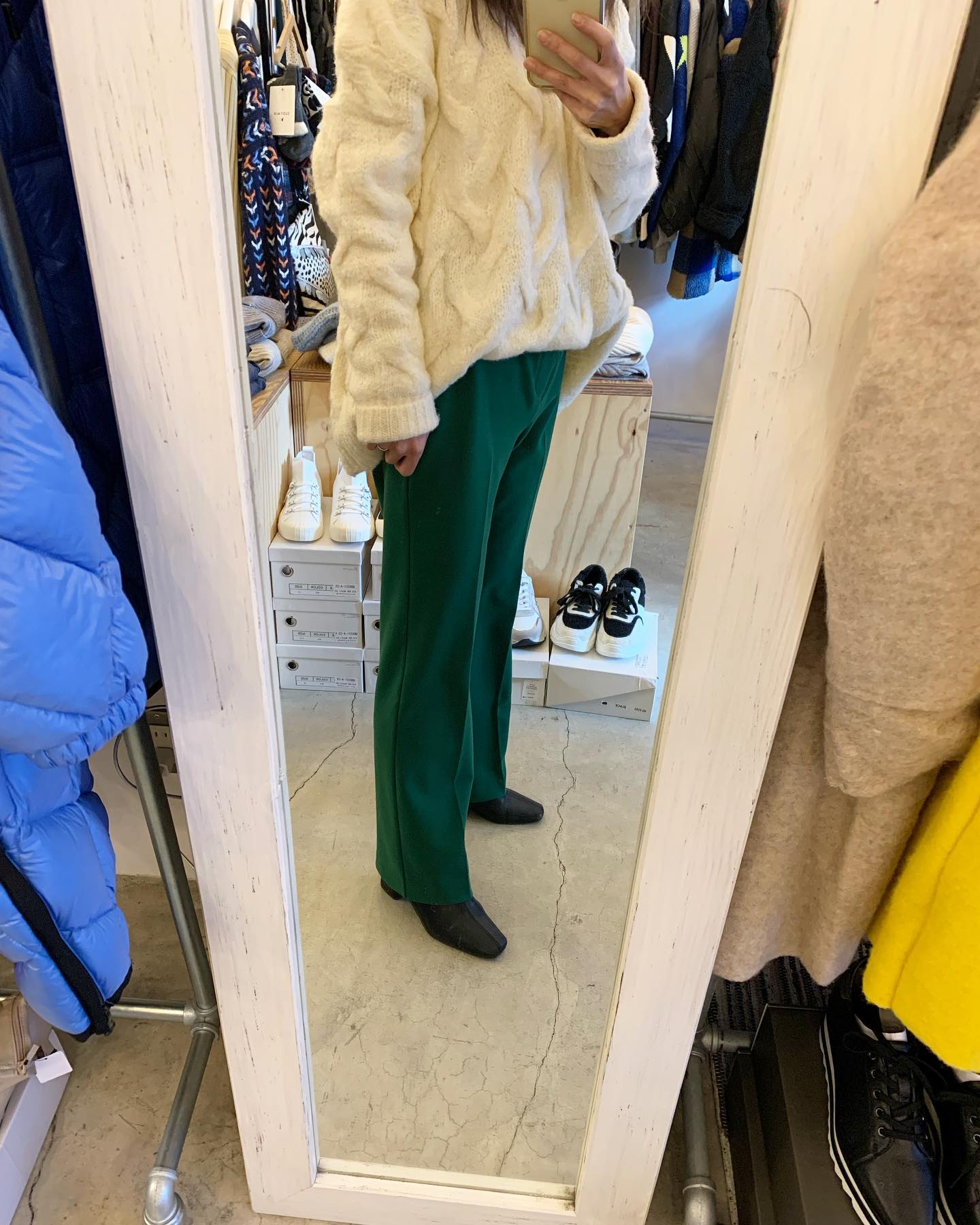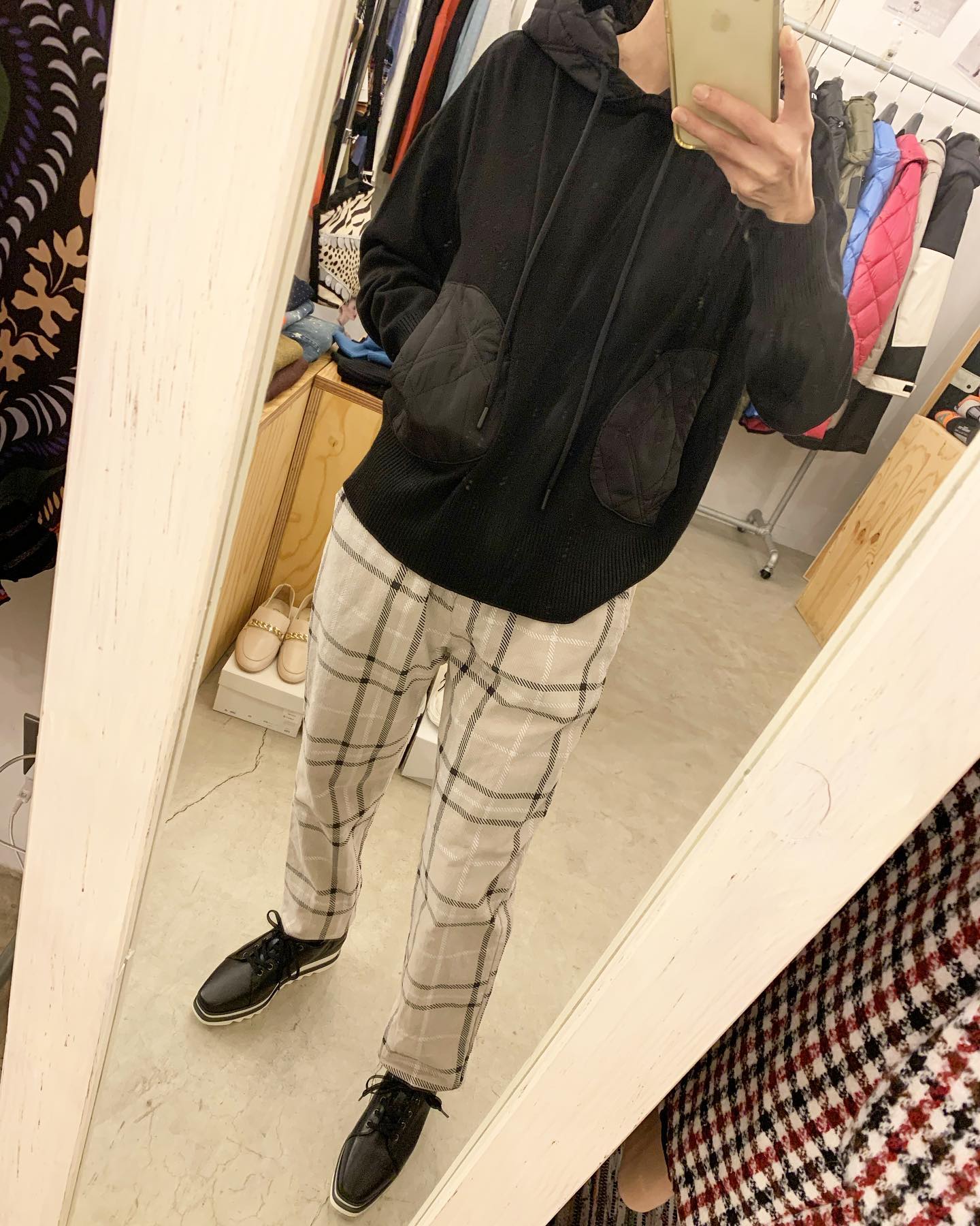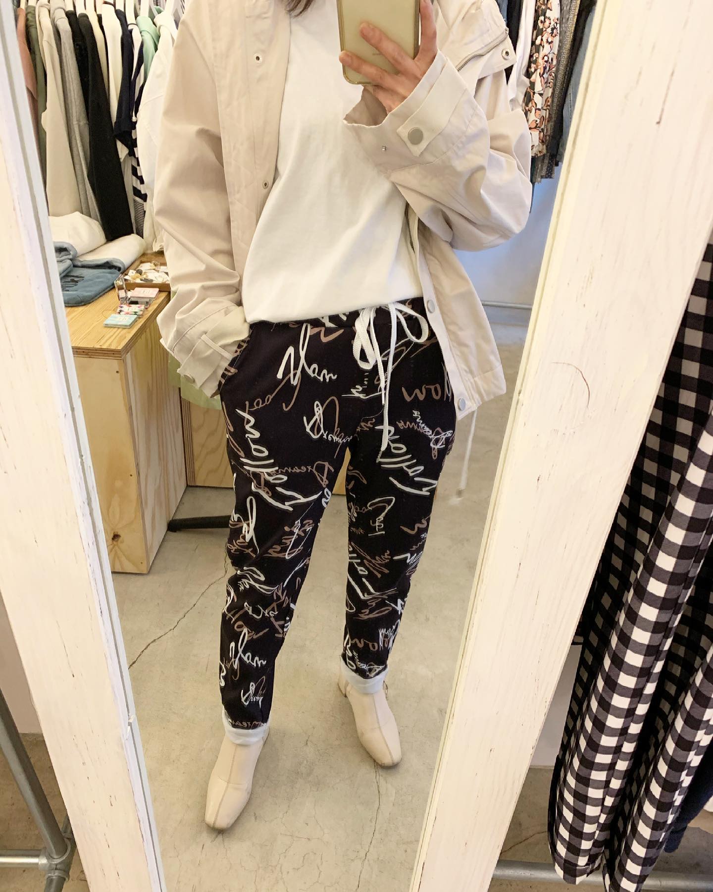 あったかボアパンツ✨ バックはフラノ素材でスッキリ #futuro#ootd#outfits #世田谷区#経堂#大人コーデ#カジュアルスタイル#セレクトショップ#インポートセレクトショップ