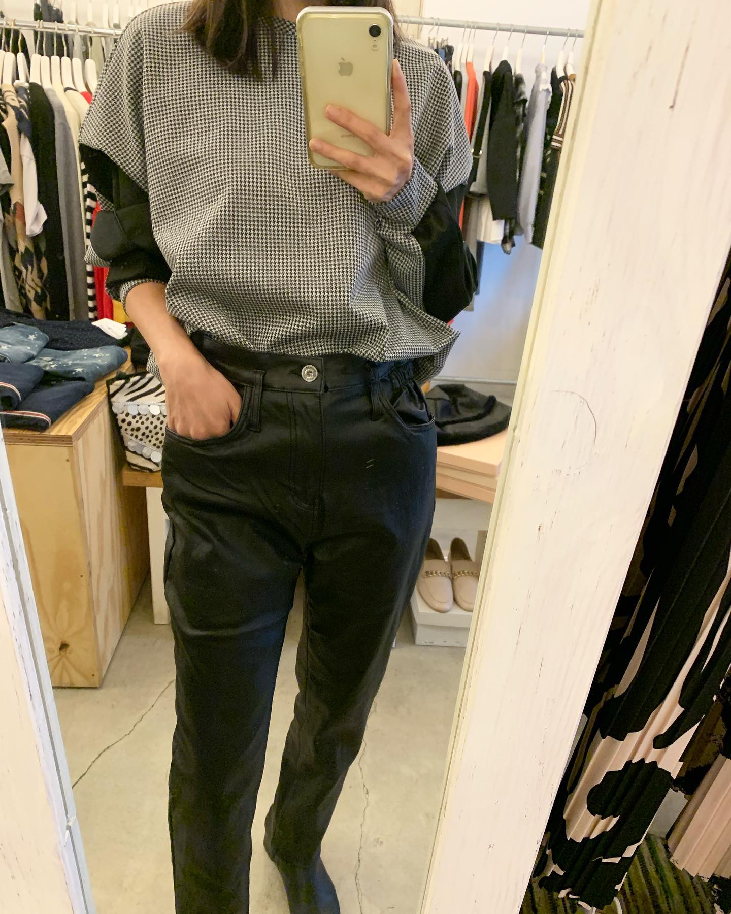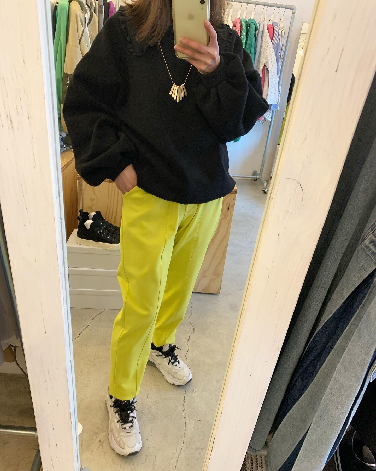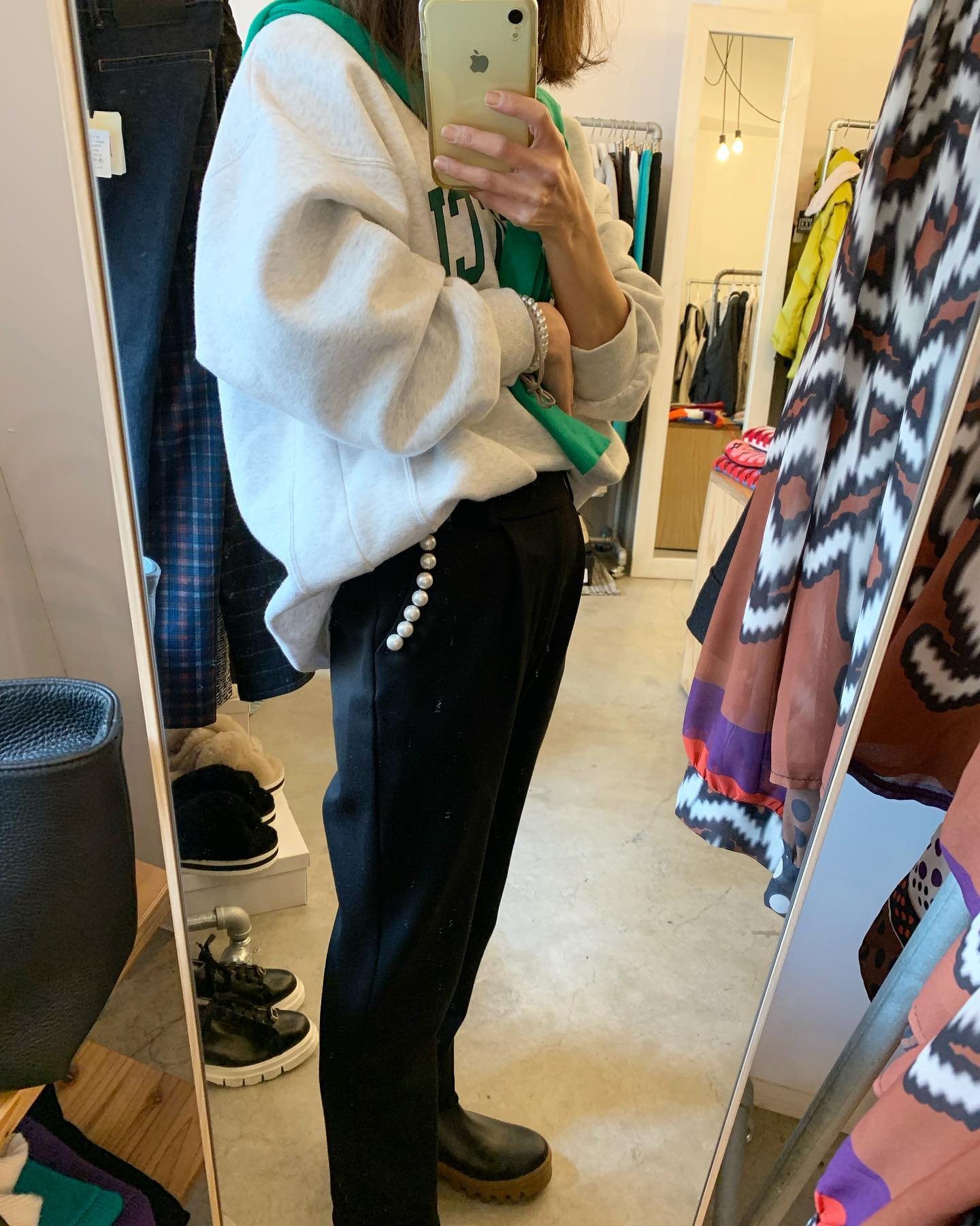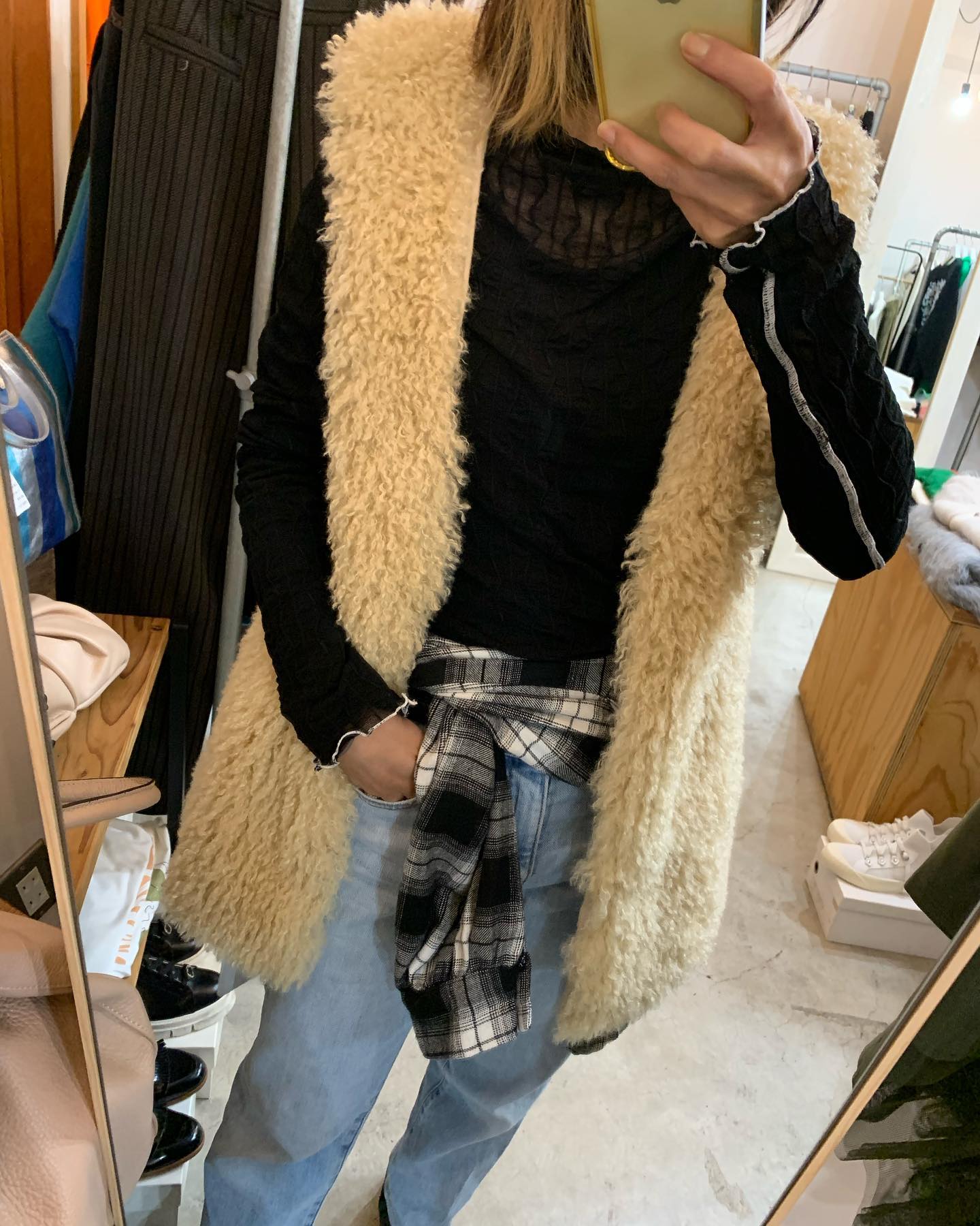 あったかボアパンツ✨ バックはフラノ素材でスッキリ #futuro#ootd#outfits #世田谷区#経堂#大人コーデ#カジュアルスタイル#セレクトショップ#インポートセレクトショップ