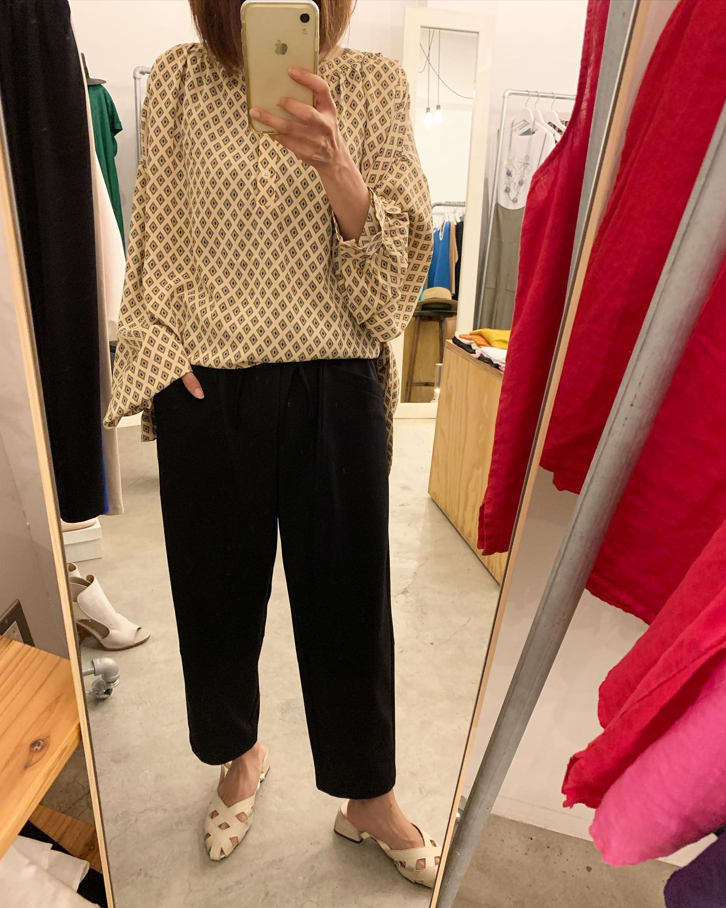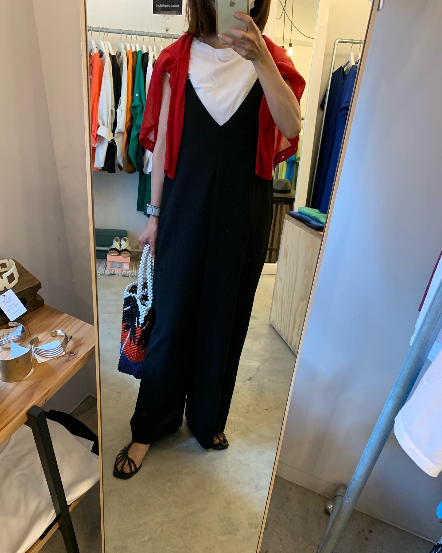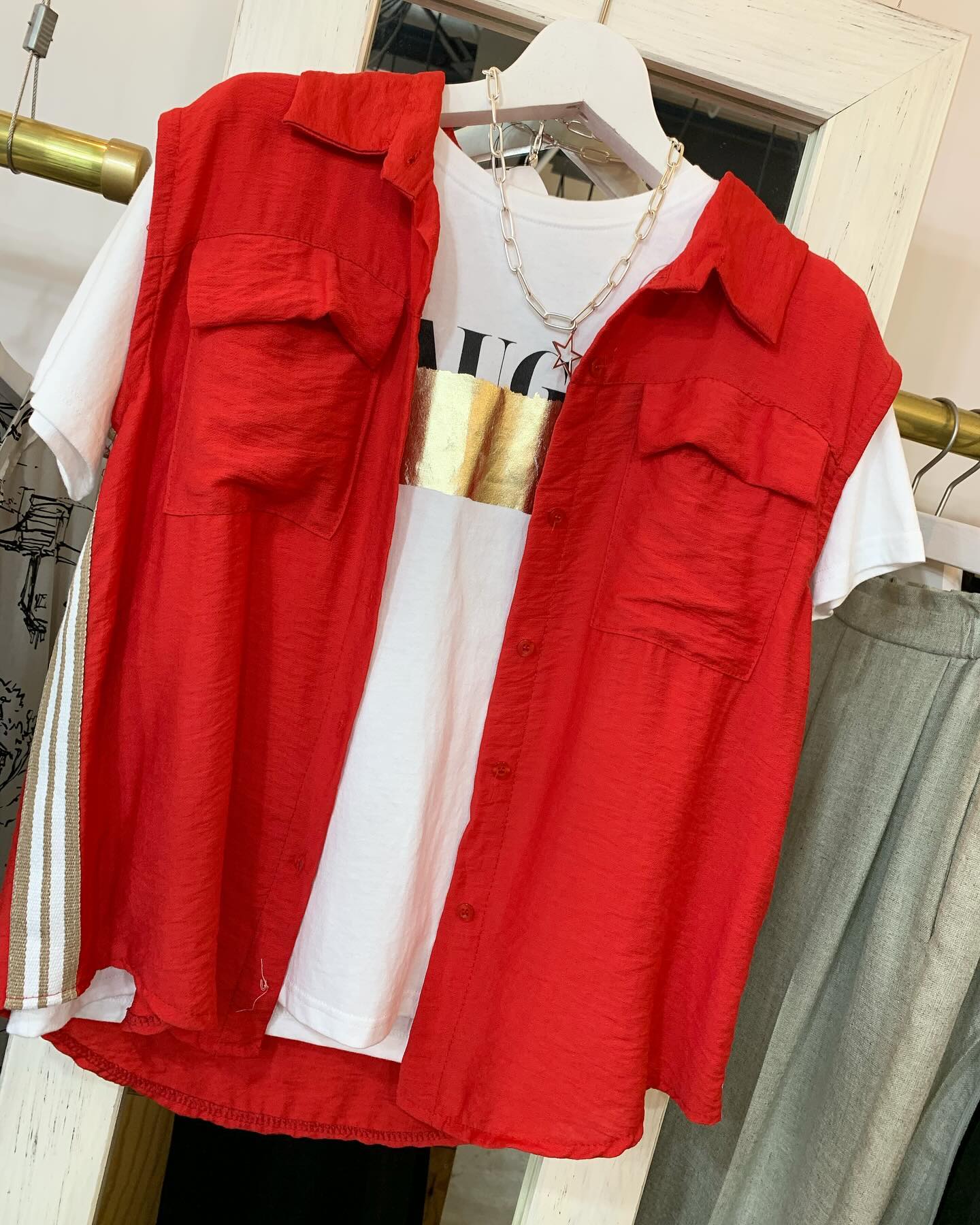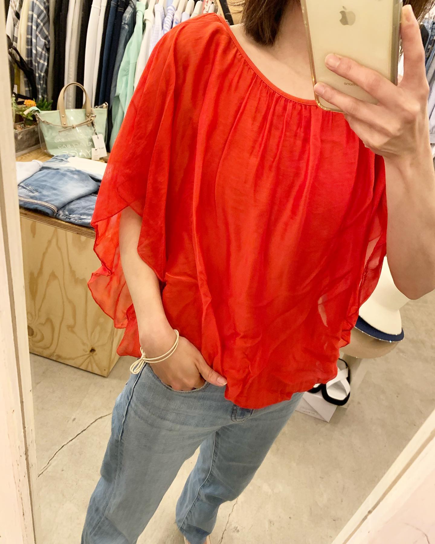 鮮やかred🟥 シルクでサラサラ〜 #futuro#ootd#outfit #コーデ#シルク#セレクトショップ#インポートセレクトショップ#世田谷区#経堂#すずらん通り