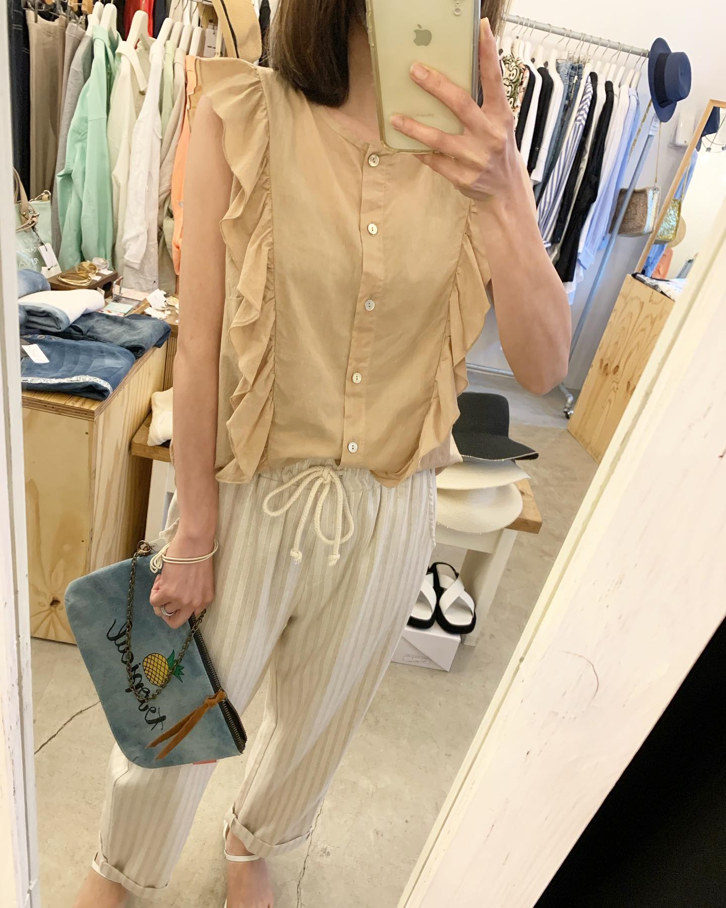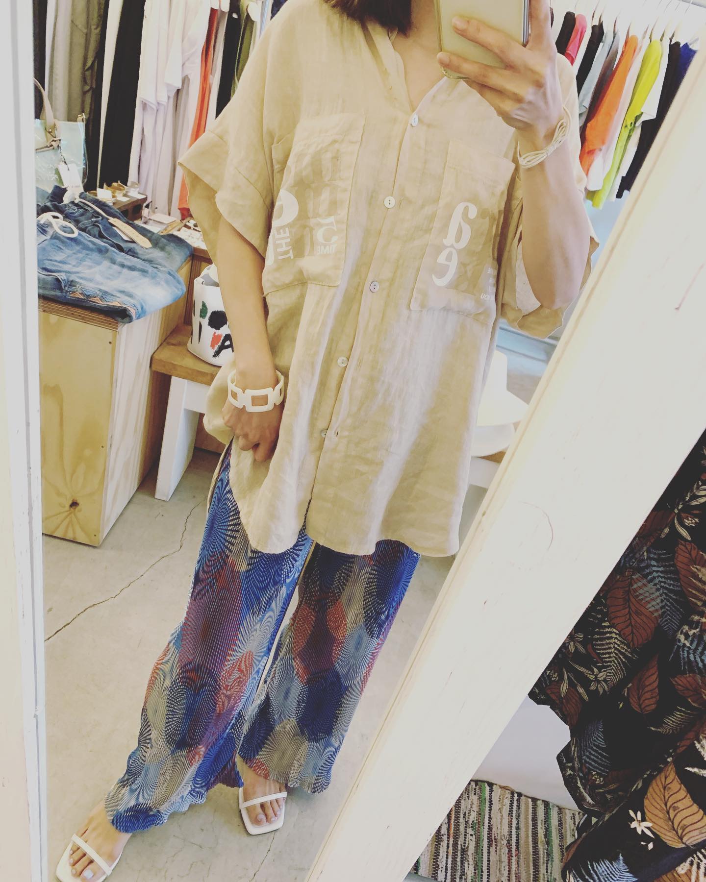迷彩にキラキラのパンツ✨ リネンのJKも大人でオススメ #futuro#ootd#outfit #italy#コーデ#fashion #イタリアコーデ#インポートセレクトショップ#セレクトショップ#世田谷区#経堂