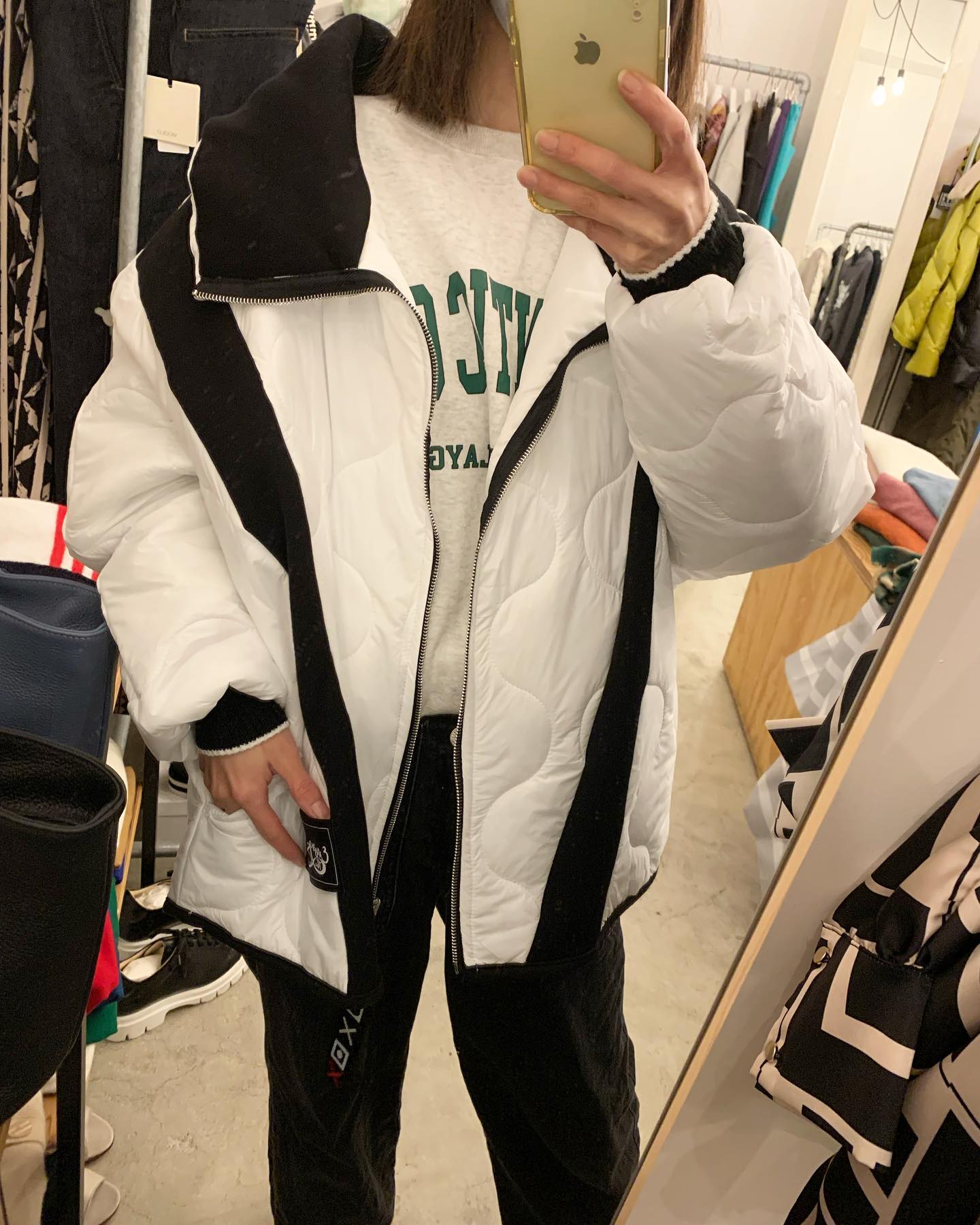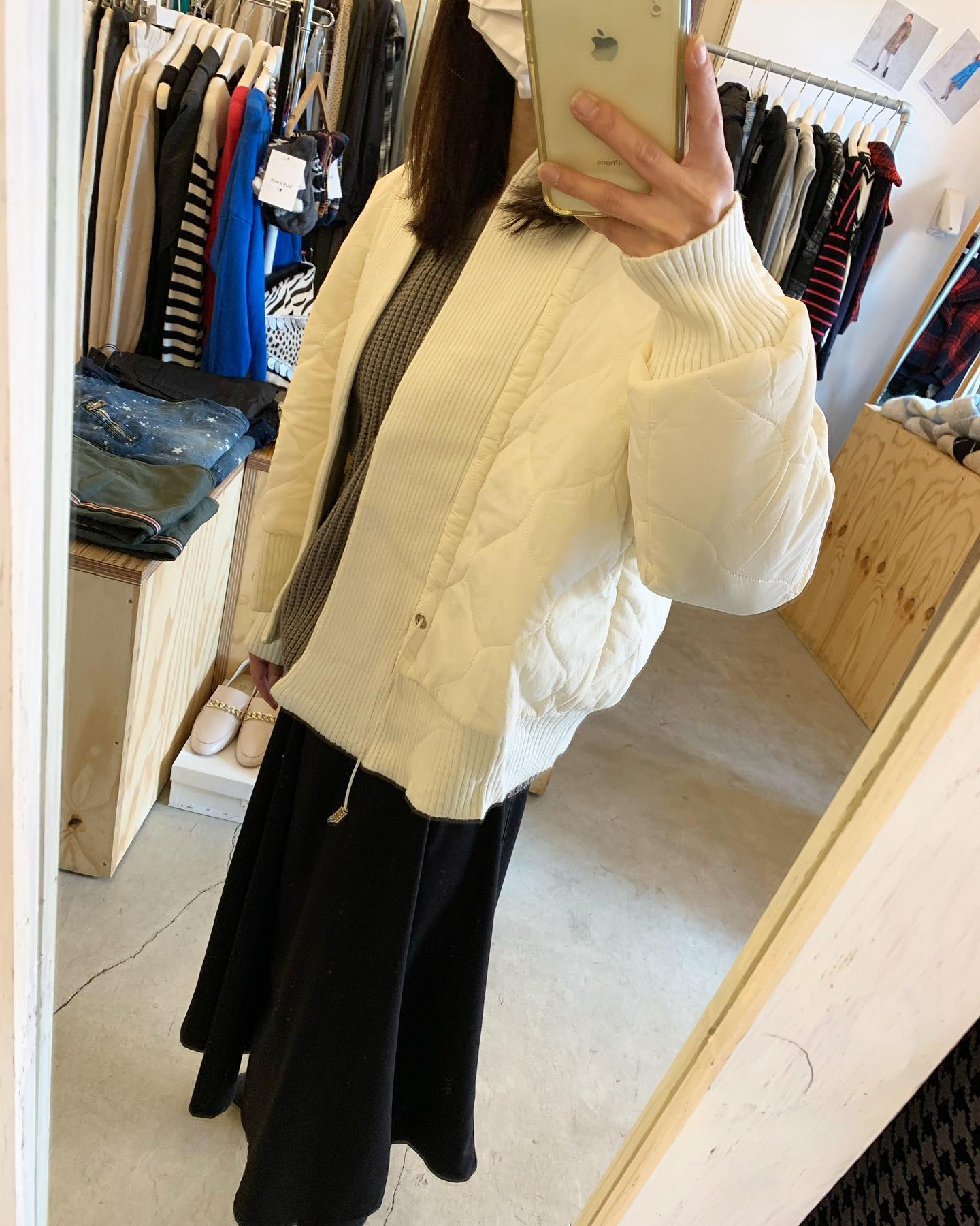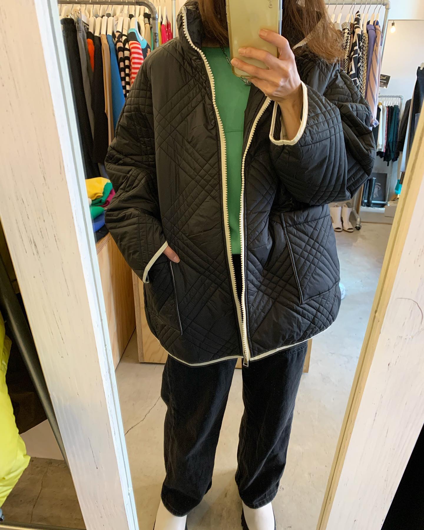 薄手のキルティングジャケットが丁度いい リバーシブルです✨ 中は単色なので使い勝手良し👍 #futuro#ootd#outfit #セレクトショップ#インポートセレクトショップ#世田谷区#経堂#大人コーデ#カジュアルスタイル