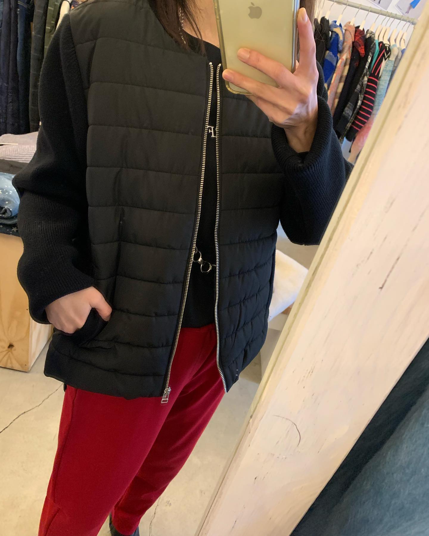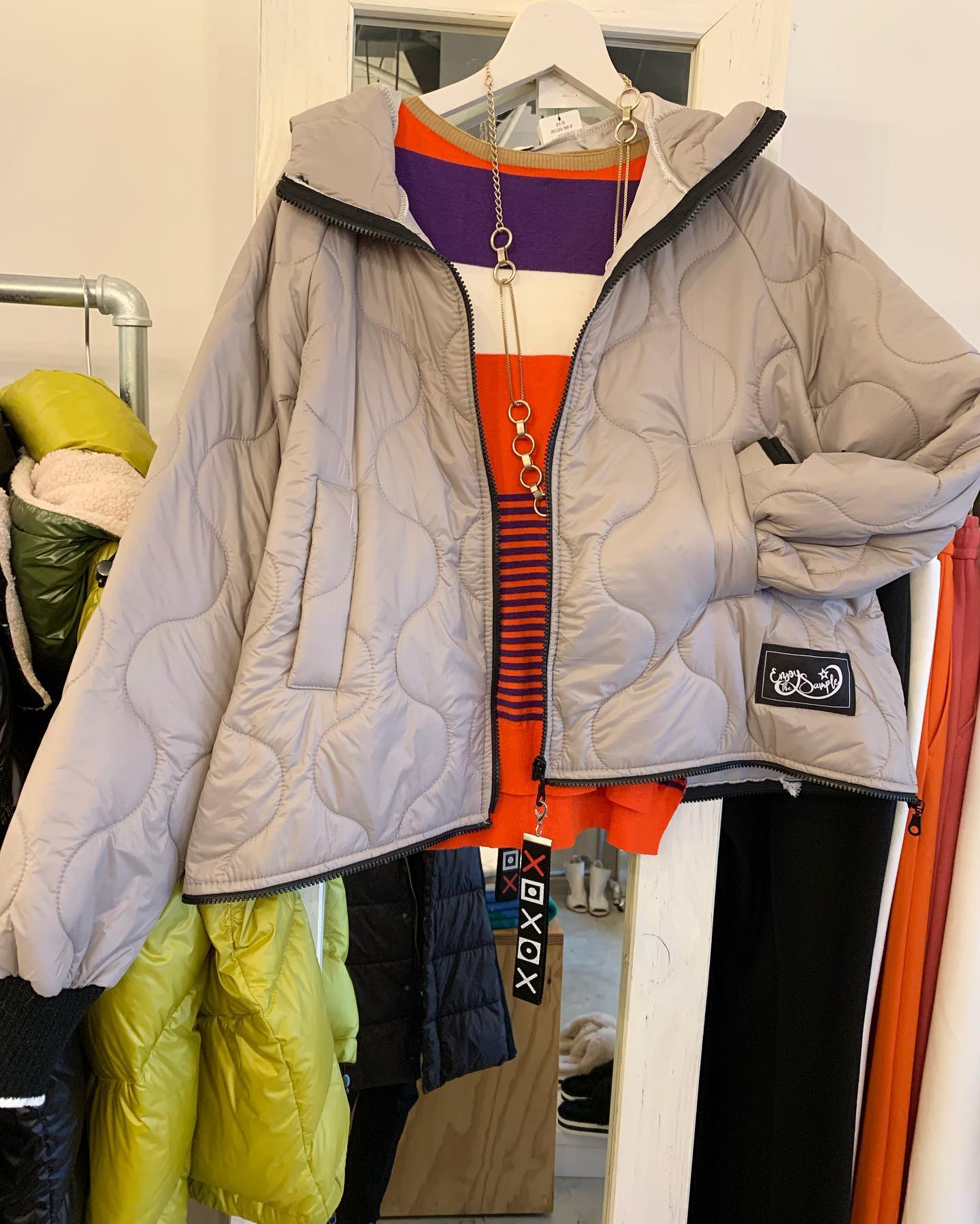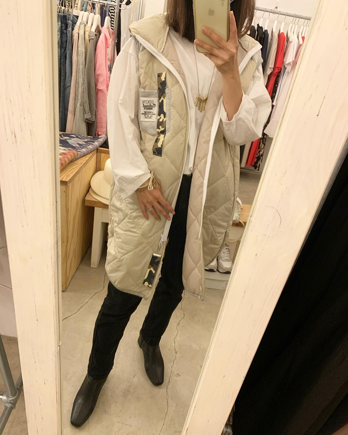 薄手のキルティングジャケットが丁度いい リバーシブルです✨ 中は単色なので使い勝手良し👍 #futuro#ootd#outfit #セレクトショップ#インポートセレクトショップ#世田谷区#経堂#大人コーデ#カジュアルスタイル
