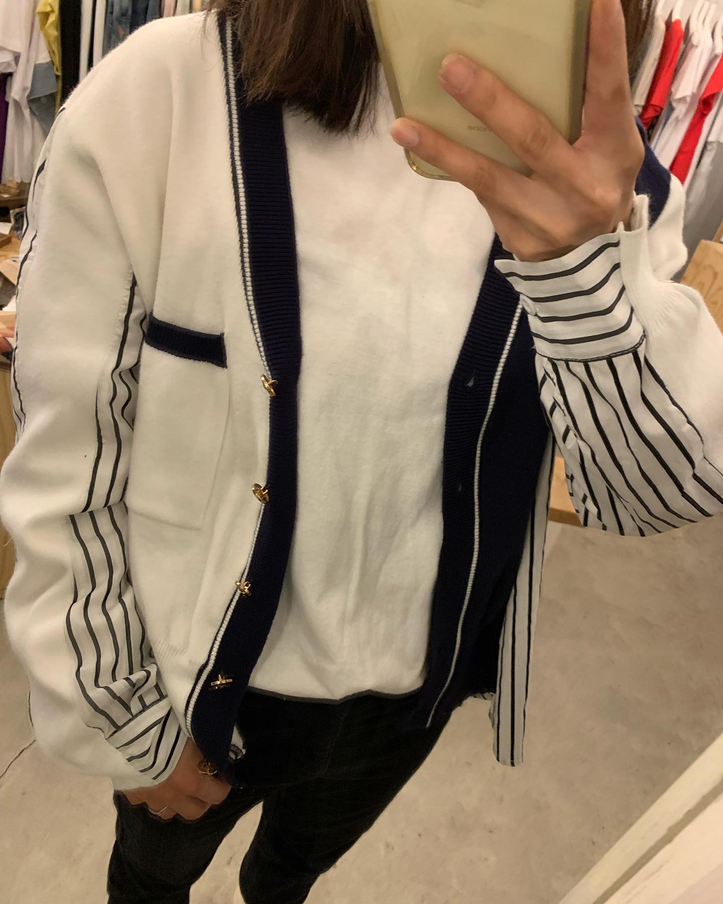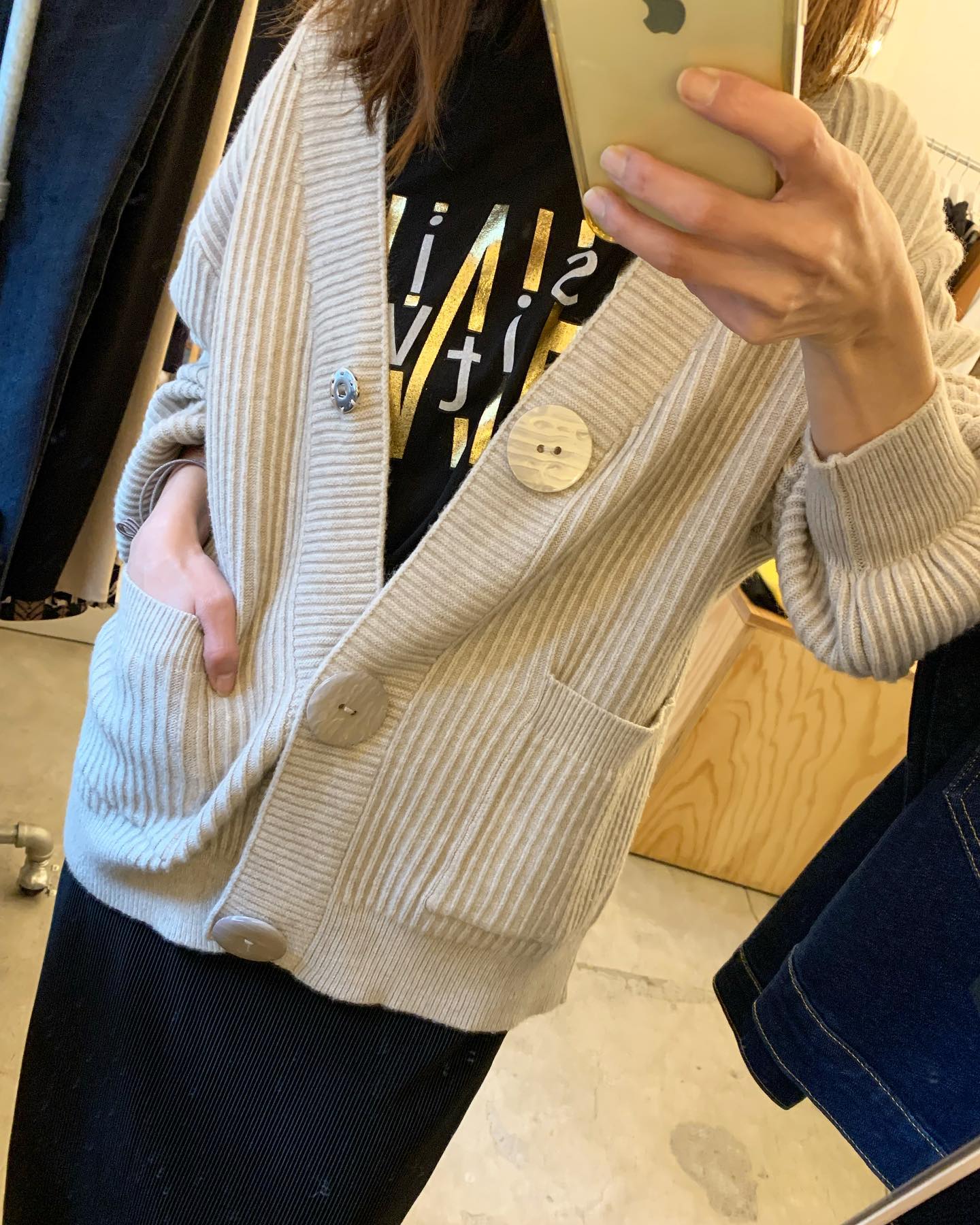 ゴールドボタンがかわいいニット リブニットカーデ✨ トップスとして上品に着るのも👍 #FUTURO#ootd#outfit #italyfashion #セレクトショップ#インポートセレクトショップ#インポートファッション#世田谷区#経堂#大人コーデ#カジュアルスタイル