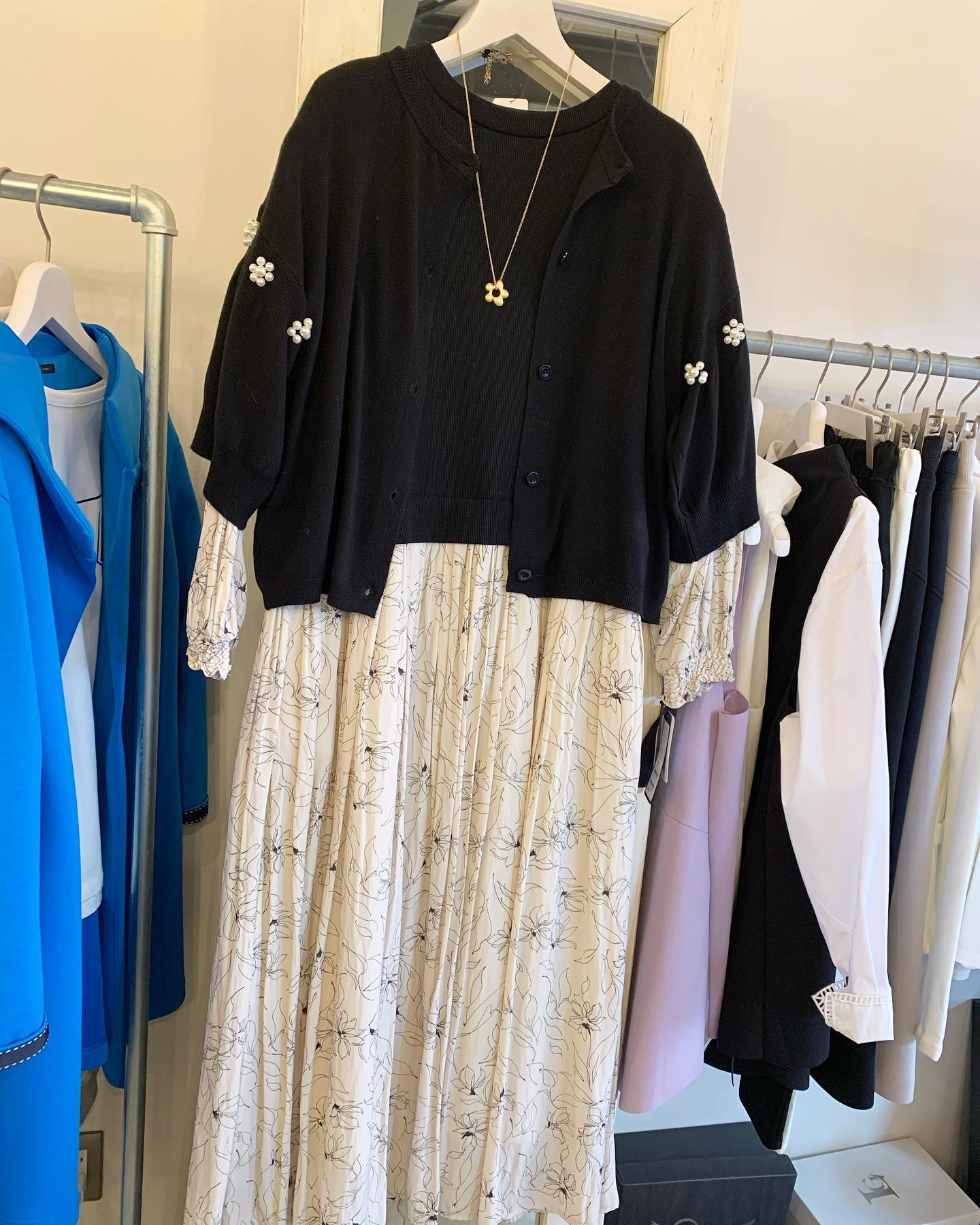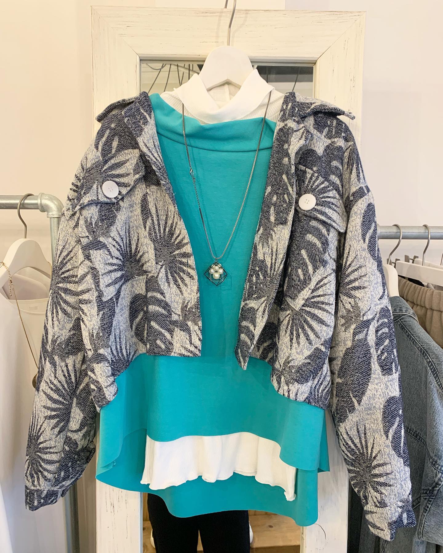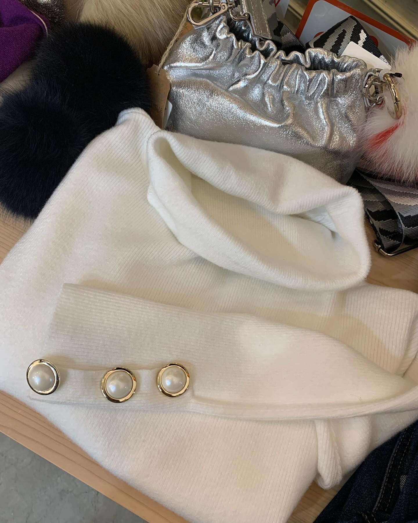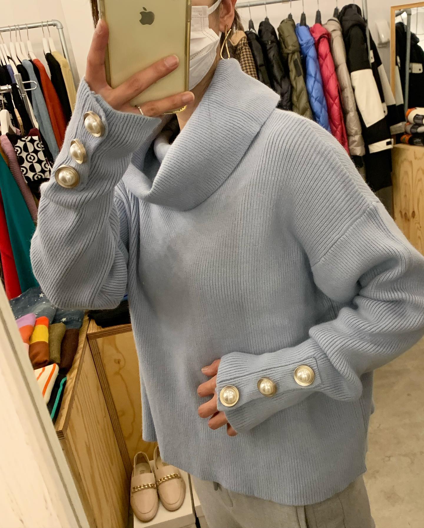大きなパールがついたオフタートルニット キレイなブルーと真っ白💙🤍 #FUTURO#ootd#outfit #italyfashion #セレクトショップ#インポートセレクトショップ#インポートファッション#世田谷区#経堂#大人コーデ#カジュアルスタイル