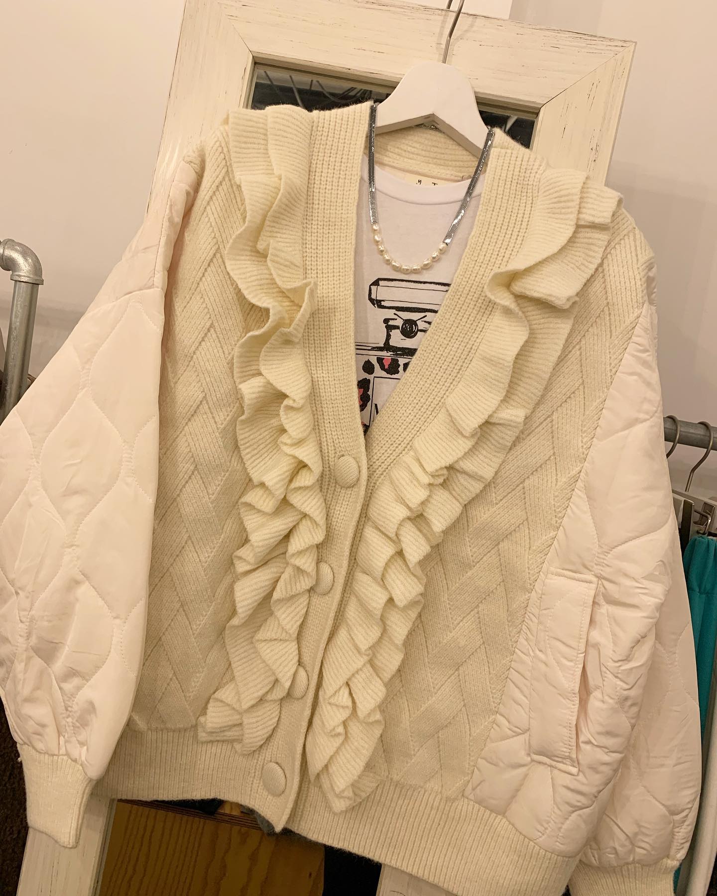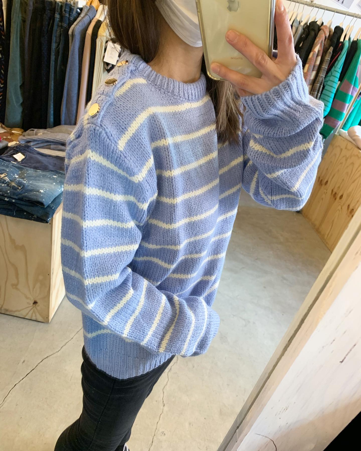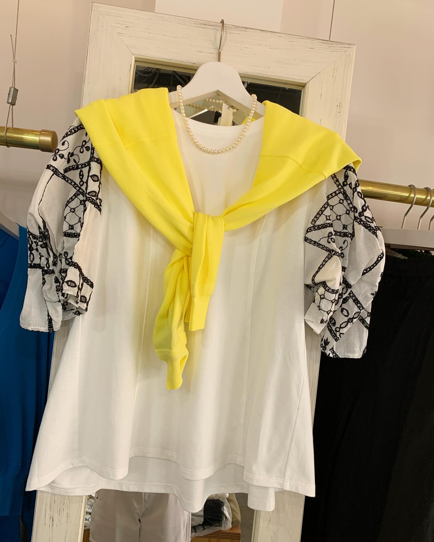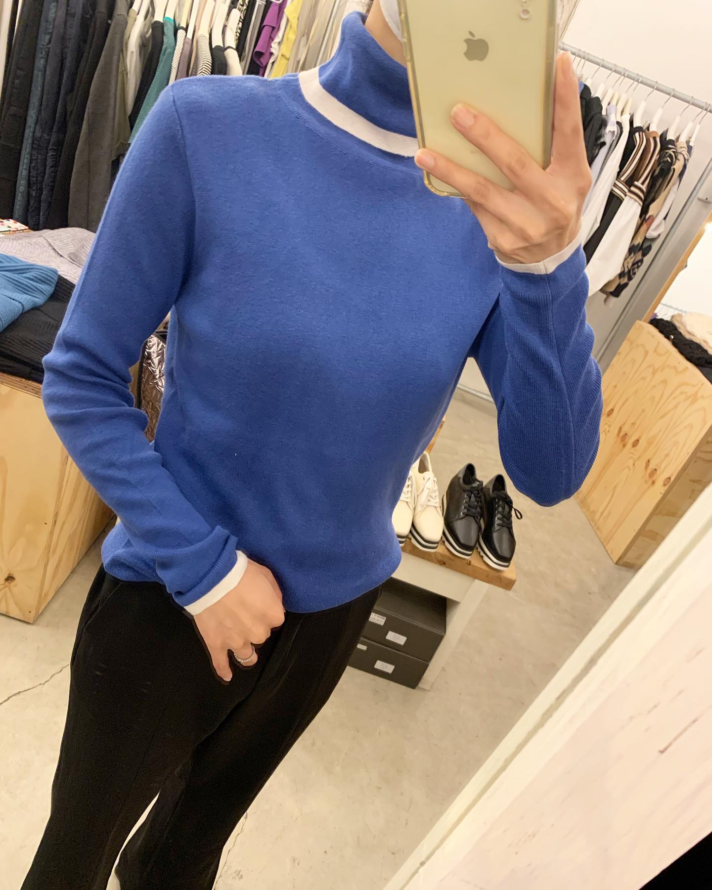 大きなパールがついたオフタートルニット キレイなブルーと真っ白💙🤍 #FUTURO#ootd#outfit #italyfashion #セレクトショップ#インポートセレクトショップ#インポートファッション#世田谷区#経堂#大人コーデ#カジュアルスタイル