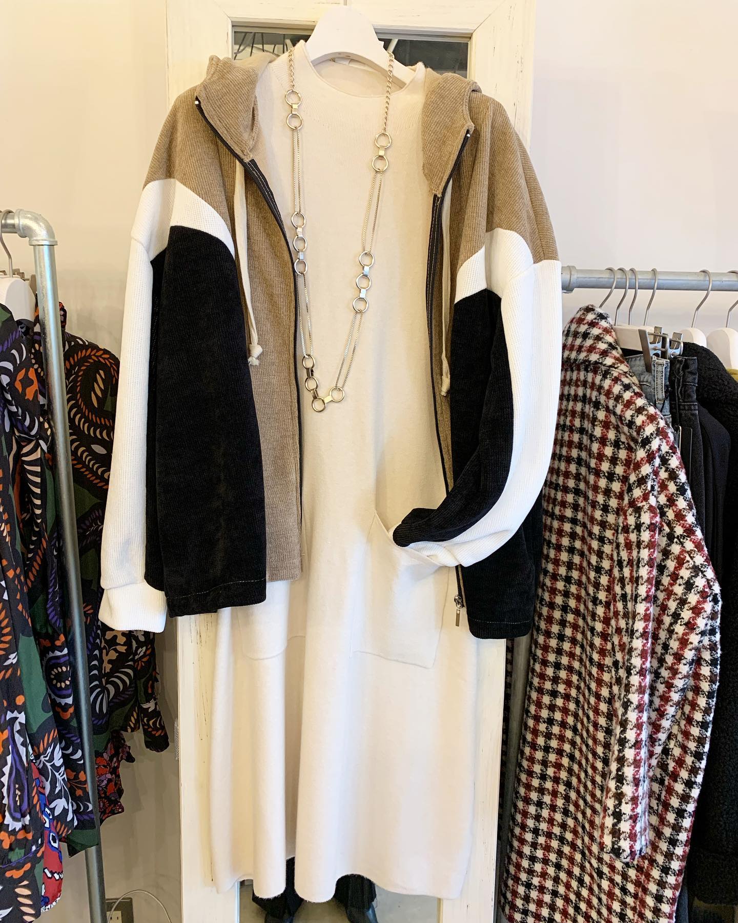 フード付きニット🤍 着やすくてギュッと詰まったニットで 毛玉もできにくそうで嬉しい☺️ #FUTURO#ootd#outfit #italyfashion #セレクトショップ#インポートファッション#インポートセレクトショップ#世田谷区#経堂#大人コーデ#カジュアルスタイル
