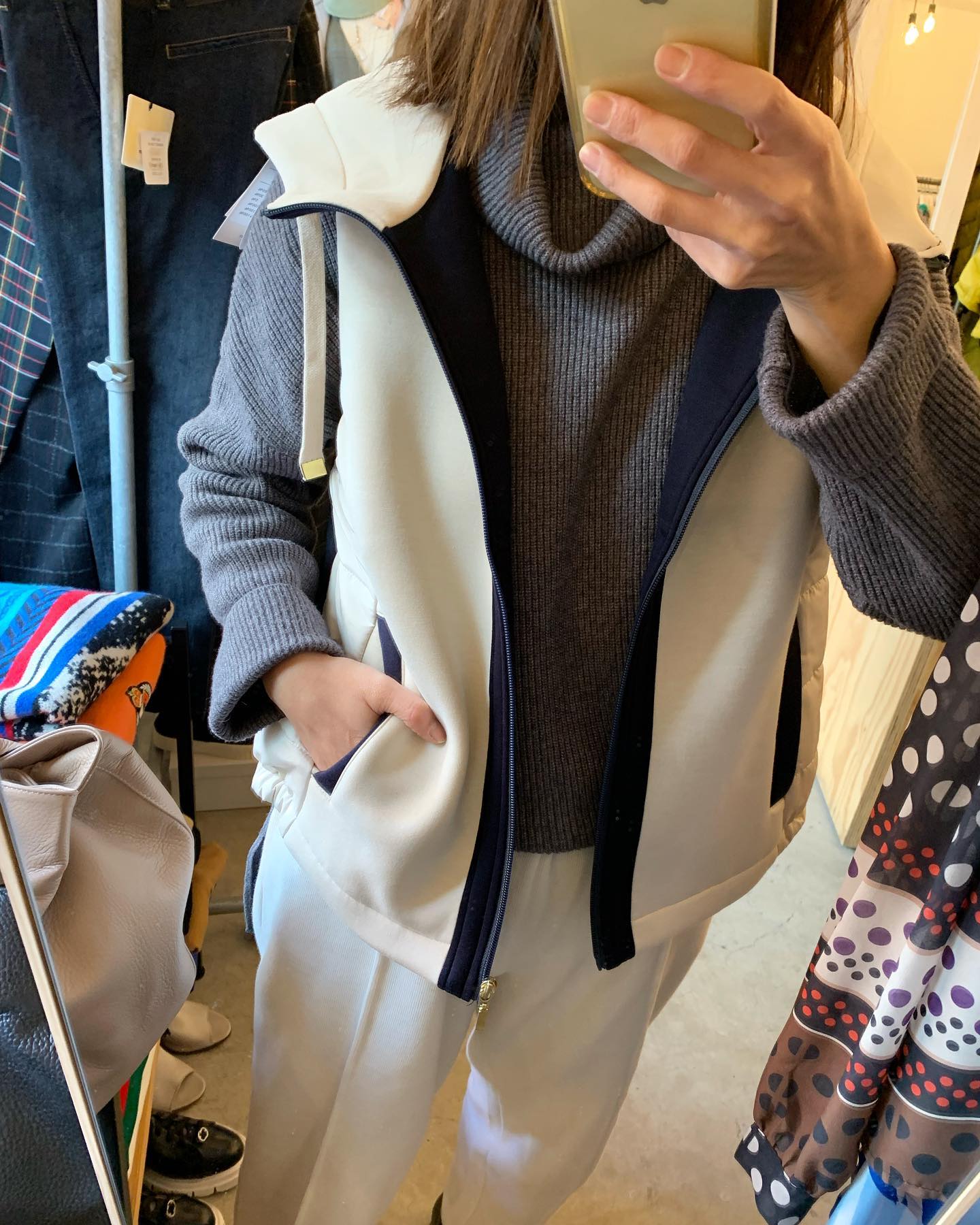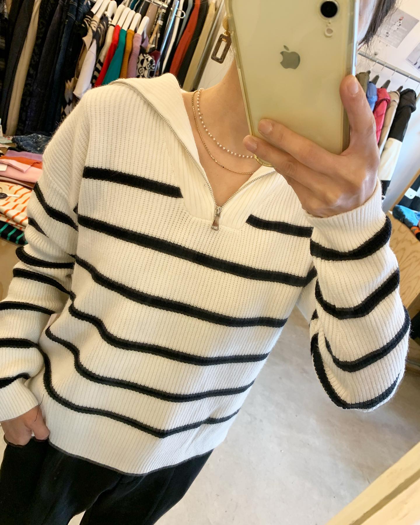 人気のハーフジップアップニット✨ 首元がスッキリ見えてオススメ☆ #FUTURO#ootd#outfit #italyfashion #セレクトショップ#インポートセレクトショップ#インポートファッション#世田谷区#経堂#大人コーデ#カジュアルスタイル