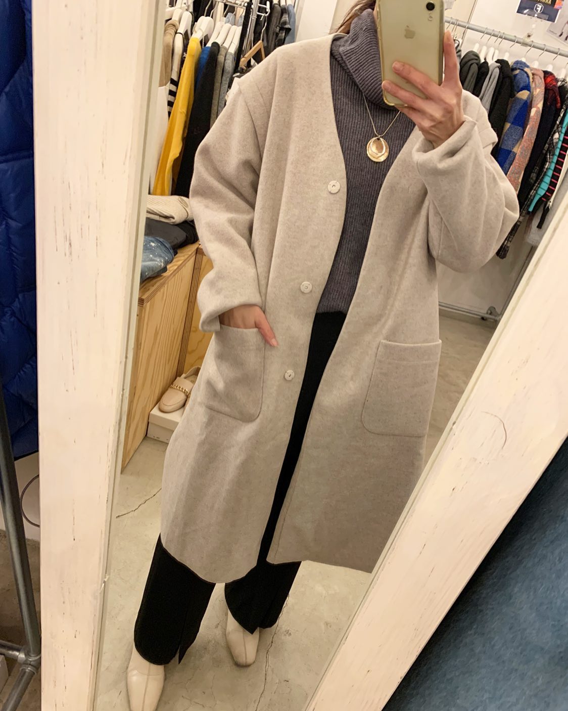 スッキリ見えるロングコート🧥 長め丈がかわいい #FUTURO#ootd#outfit #セレクトショップ#インポートファッション#インポートセレクトショップ#世田谷区#経堂#大人コーデ#カジュアルスタイル