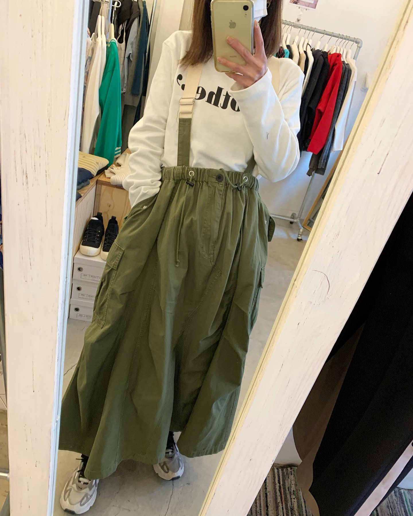 履きやすいストレッチ素材のカーゴスカート 3色展開です✨ #futuro#ootd#outfit #セレクトショップ#インポートセレクトショップ#インポートファッション#世田谷区#経堂#大人コーデ#カジュアルスタイル