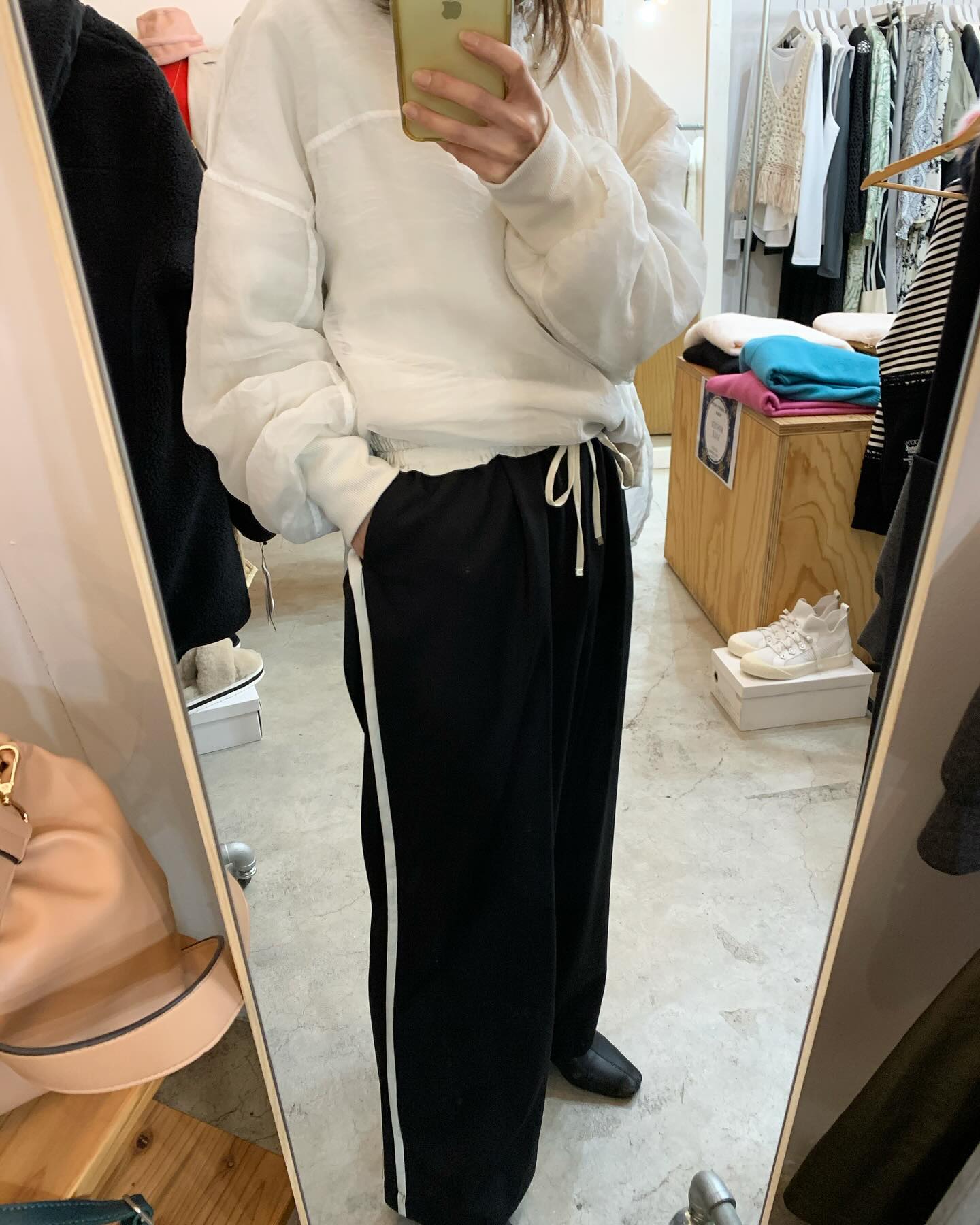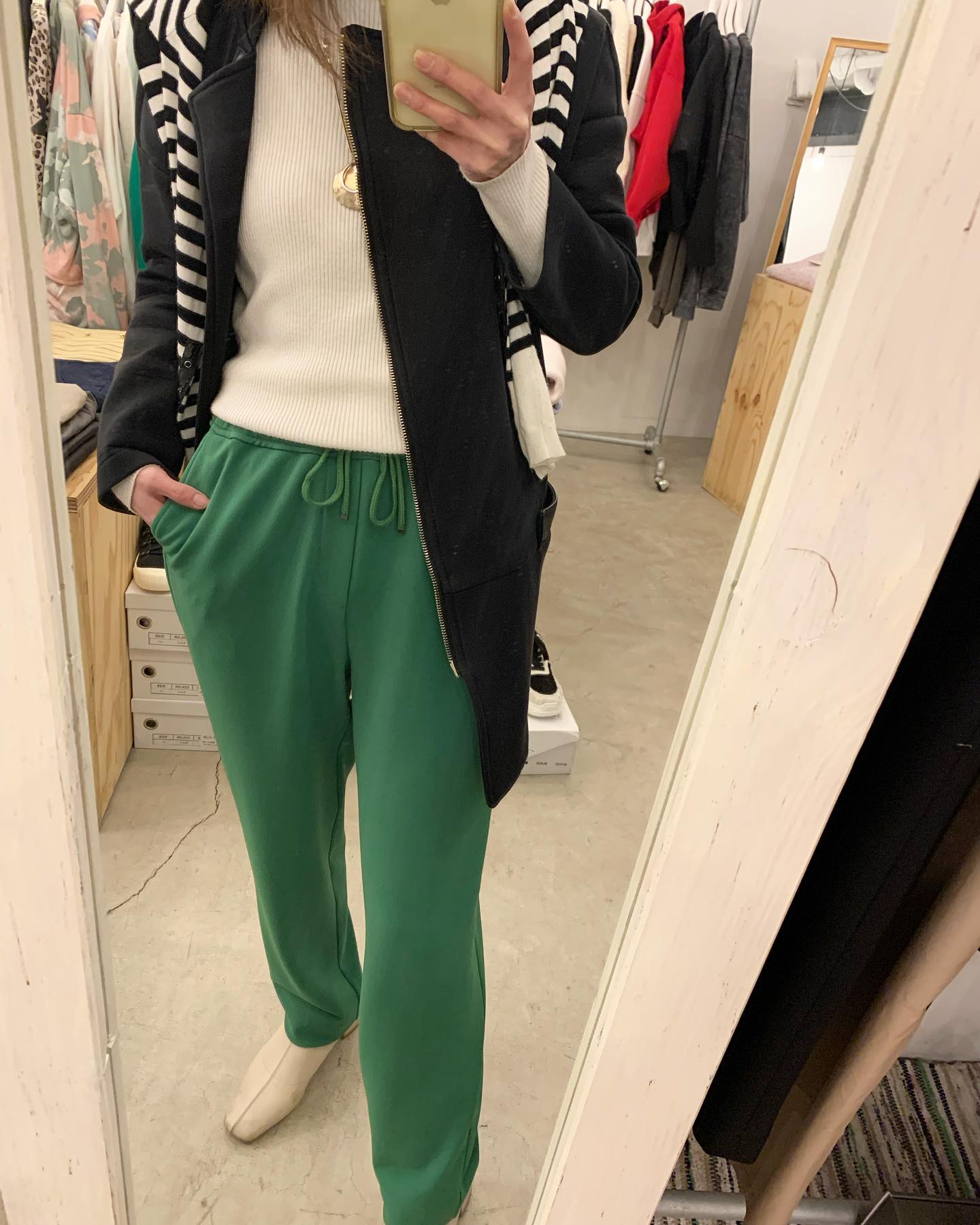 裏地がふわふわのラインジャージパンツ✨ あったか楽ちんパンツです #FUTURO#ootd#outfit #italyfashion #セレクトショップ#インポートセレクトショップ#インポートファッション#世田谷区#経堂#大人コーデ#カジュアルスタイル