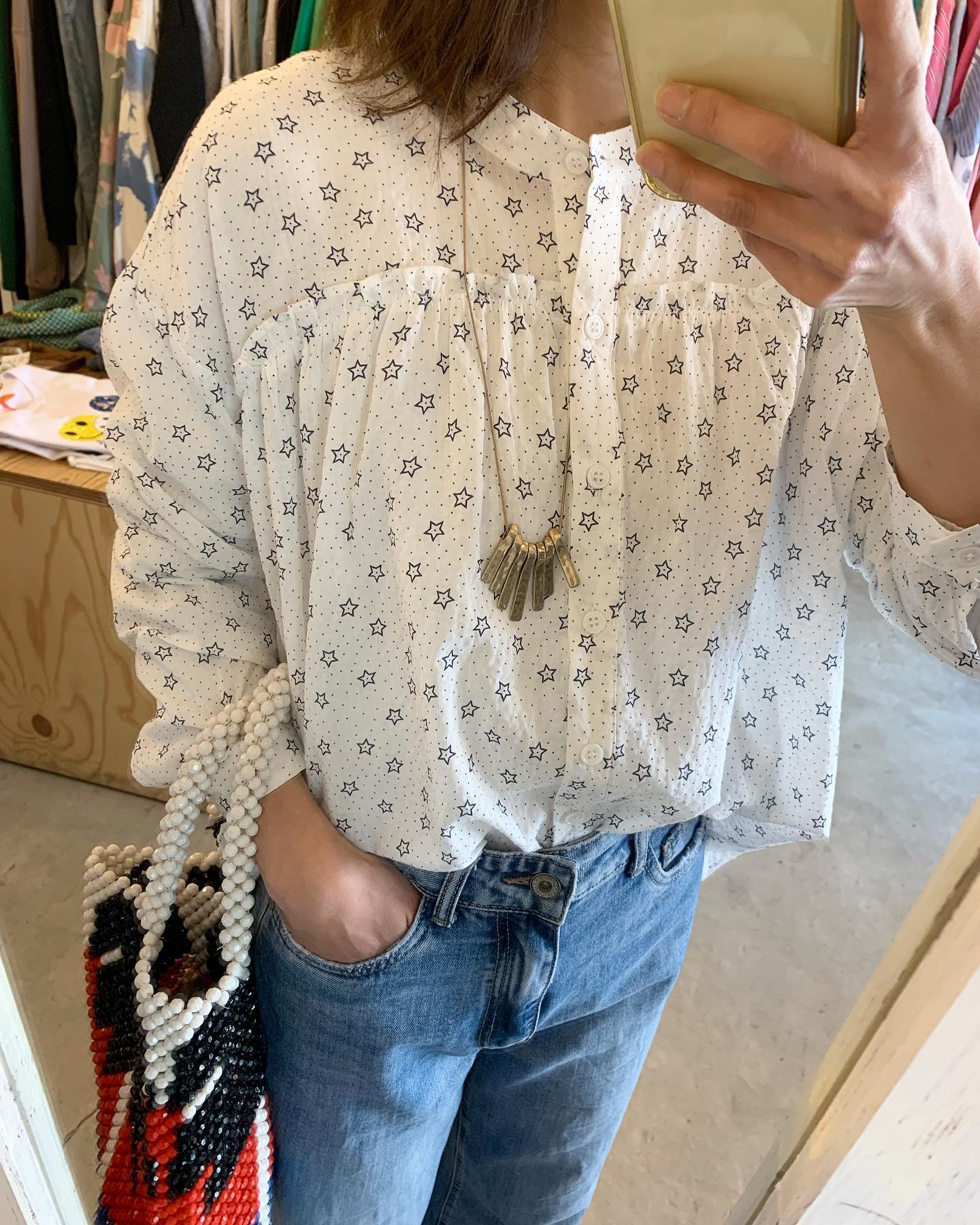 バックにSTAR☆ いろいろコーデが楽しめそう #futuro#outfit #ootd#コーデ#fashion #セレクトショップ#インポートセレクトショップ#世田谷区#経堂