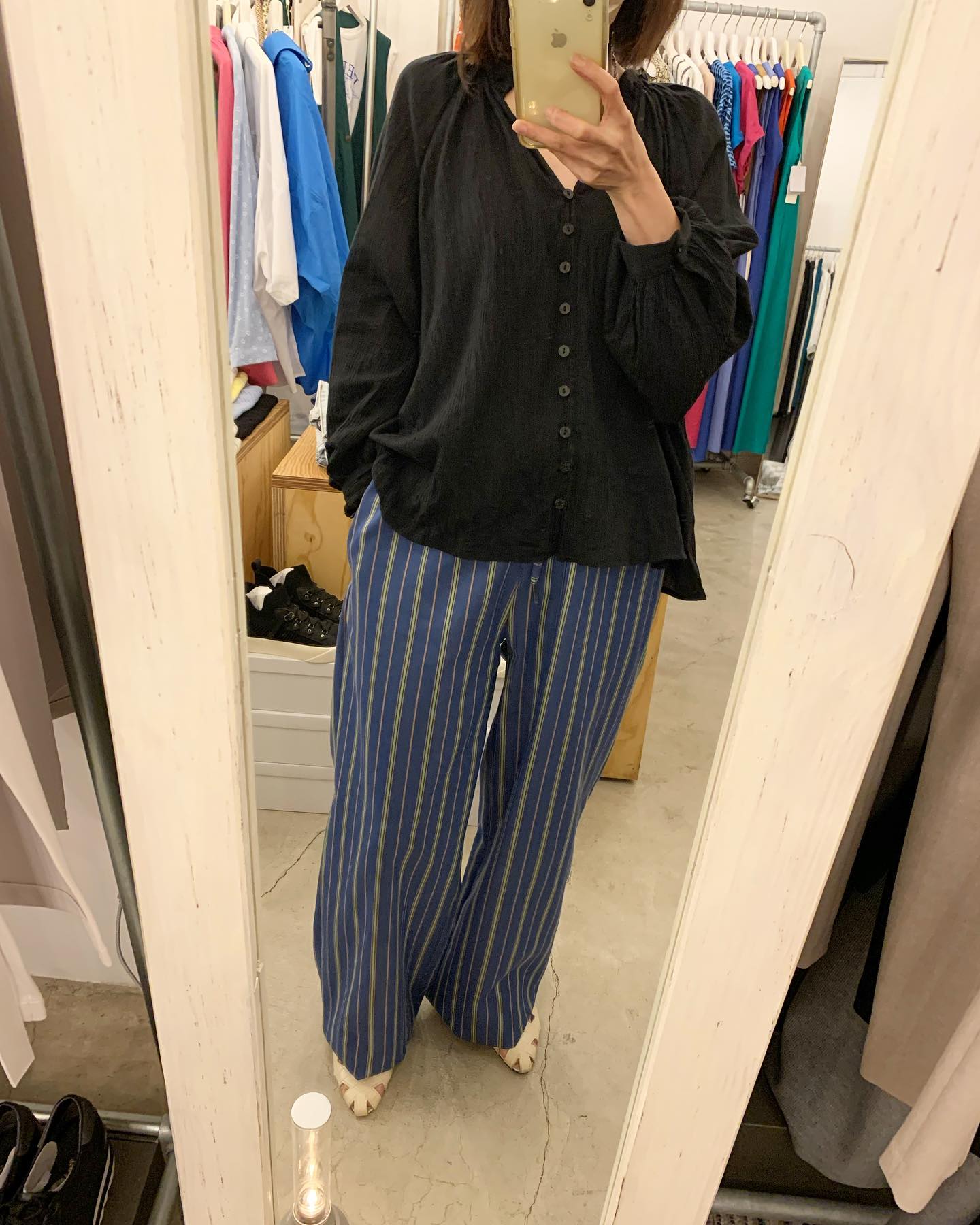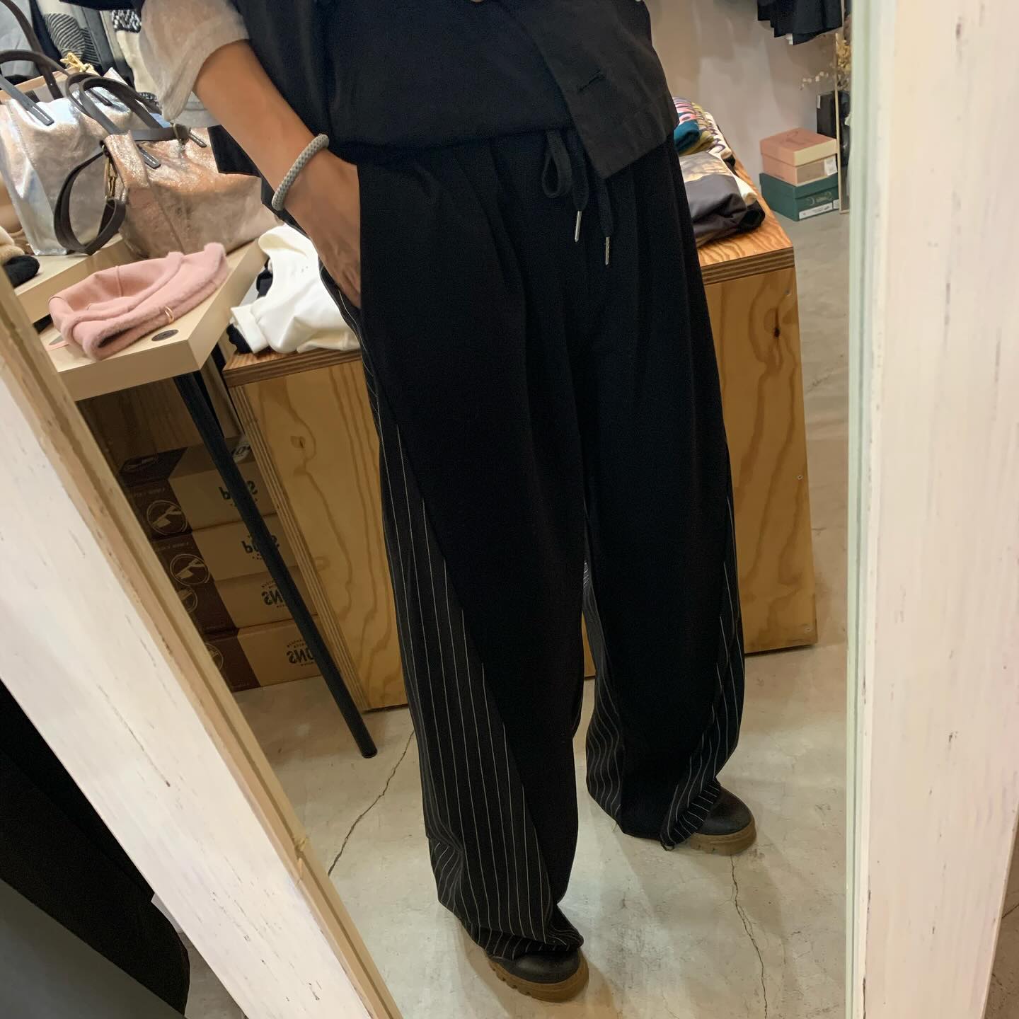 ヒップから裾に広がるストライプ が大人な印象なワイドパンツ✨ #ootd#outfit #italyfashion #セレクトショップ#インポートセレクトショップ#インポートファッション#世田谷区#経堂#大人コーデ#カジュアルスタイル