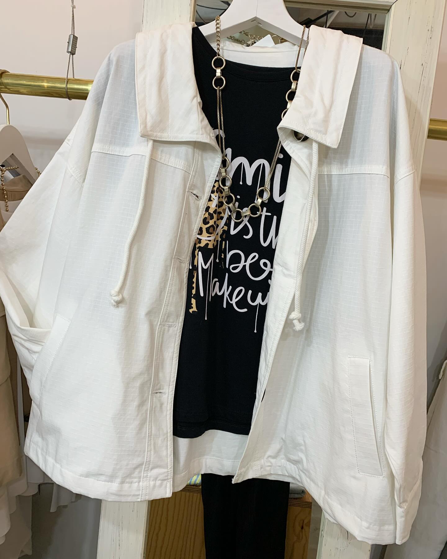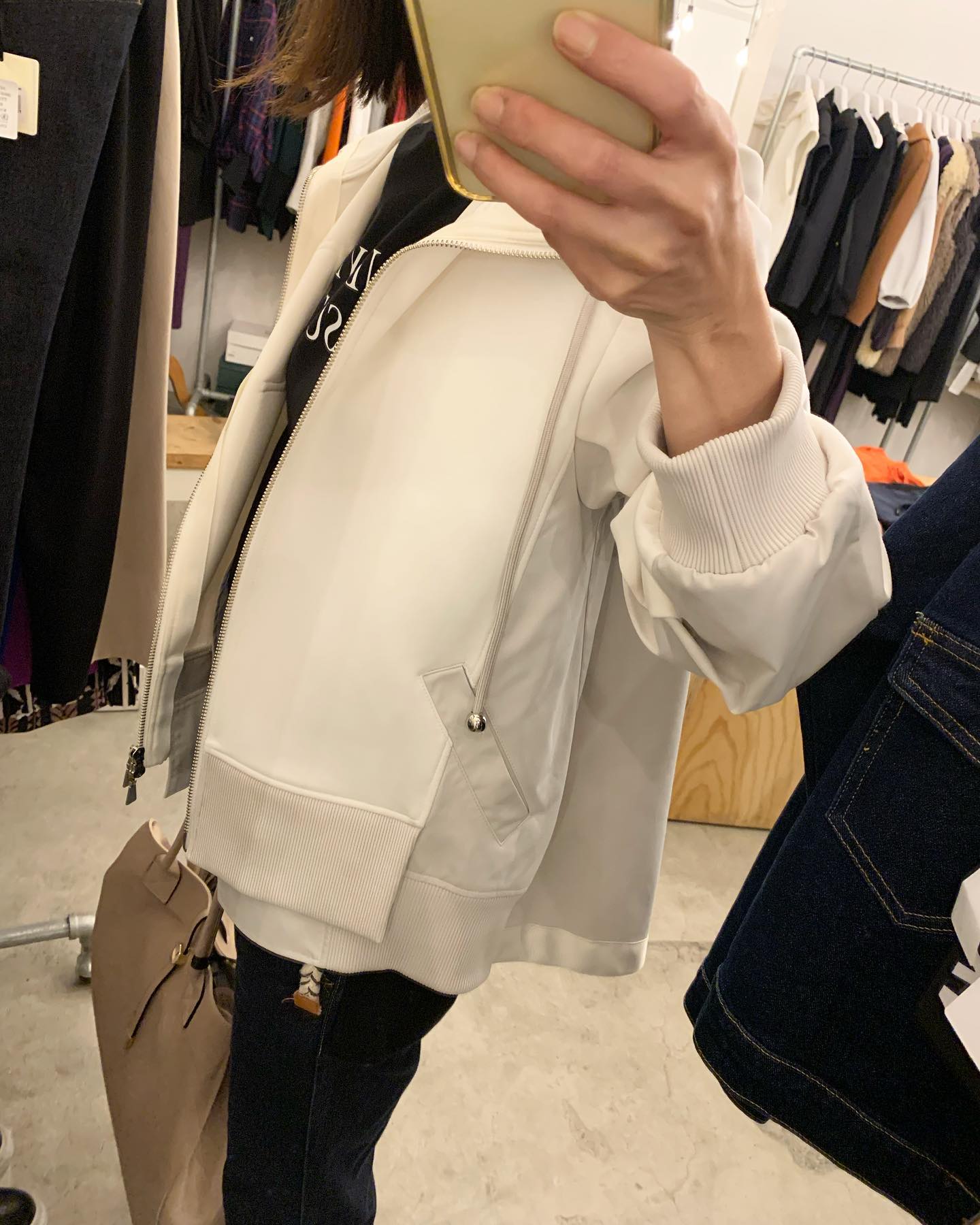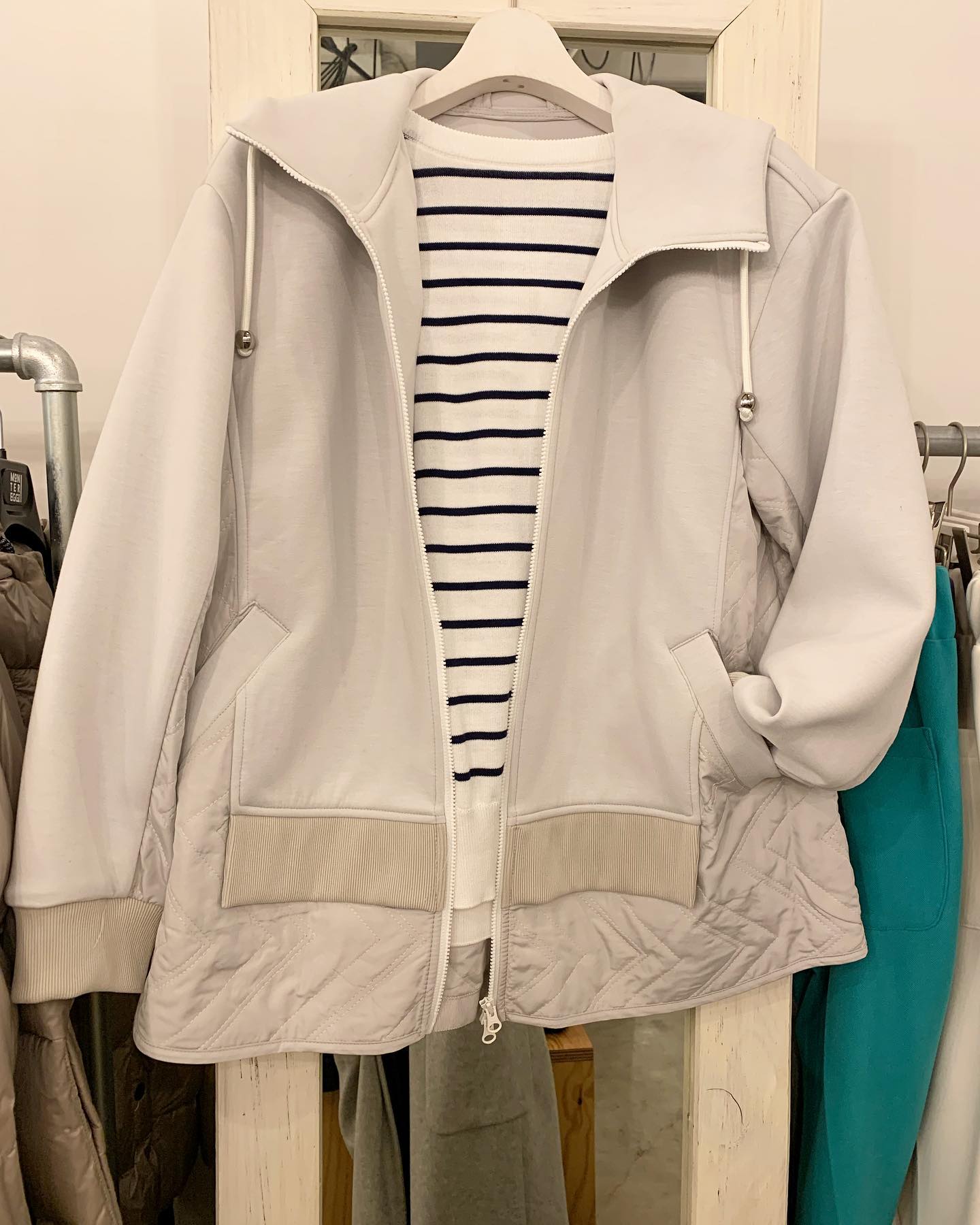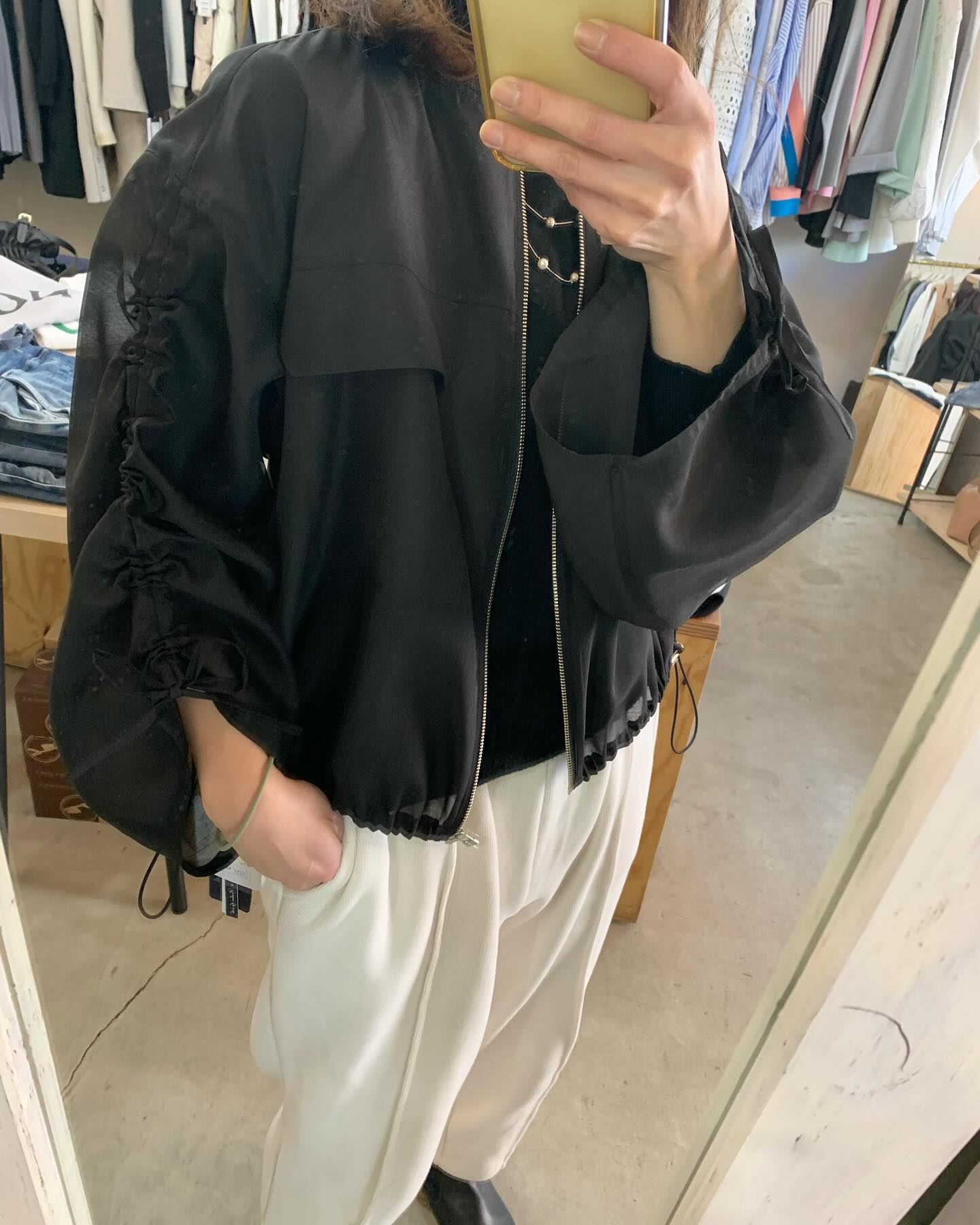 フード付きショートブルゾン✨ 今はまだこのくらいの軽いブルゾンが丁度いいですね #FUTURO#ootd#outfit #セレクトショップ#インポートファッション#インポートセレクトショップ#世田谷区#経堂#大人コーデ#カジュアルスタイル