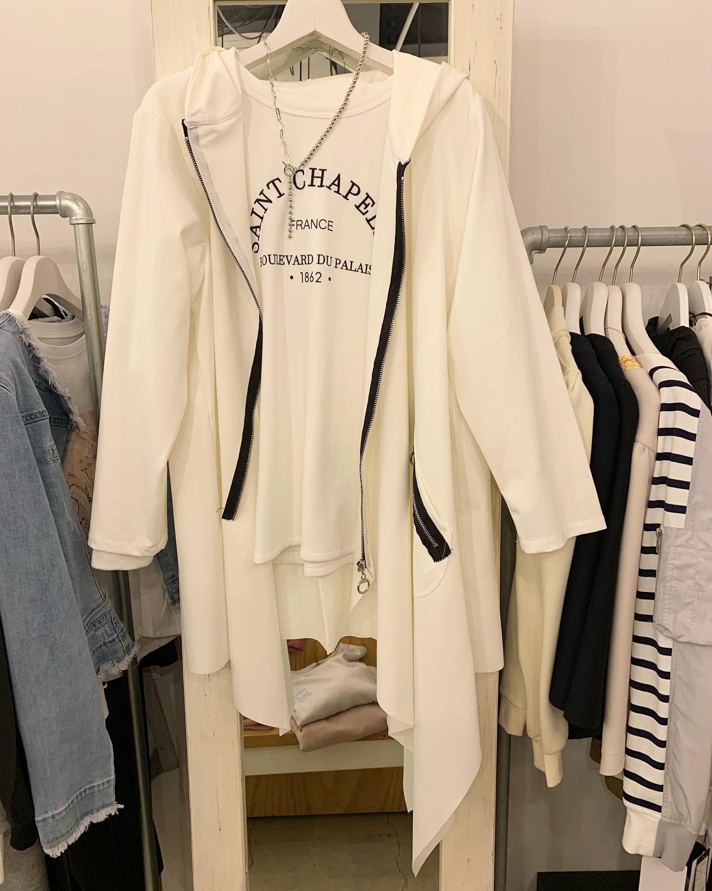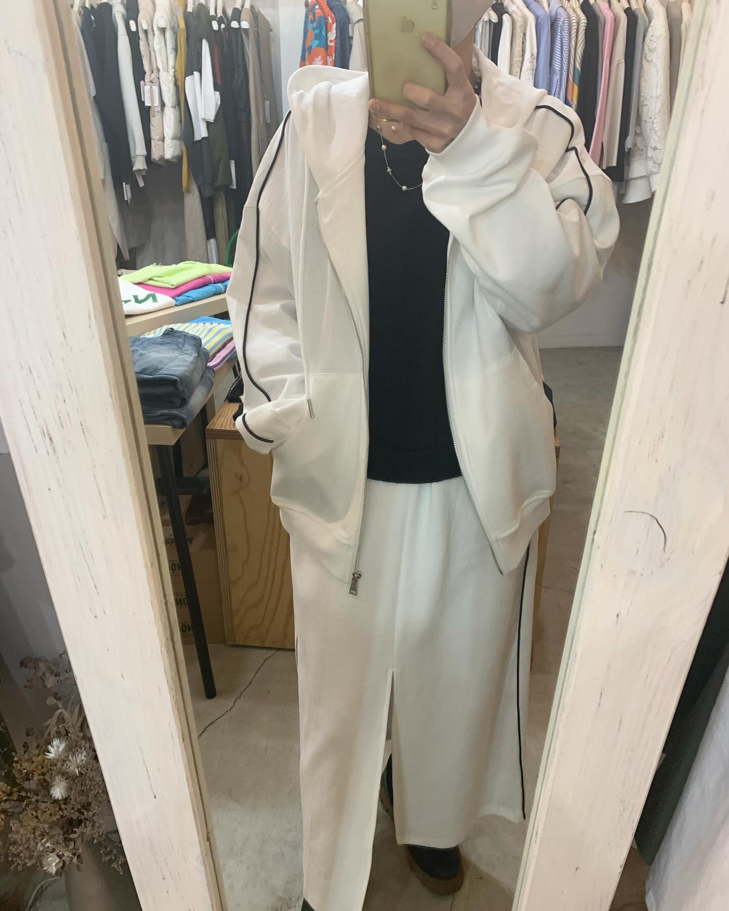 なんとなく普通のパーカーだとつまんない。 そんな方にオススメな、 白のラインが効いてるスウェットブルゾン #futuro#ootd#outfit #fashion #コーデ#セレクトショップ#インポートセレクトショップ#経堂#世田谷区#すずらん通り