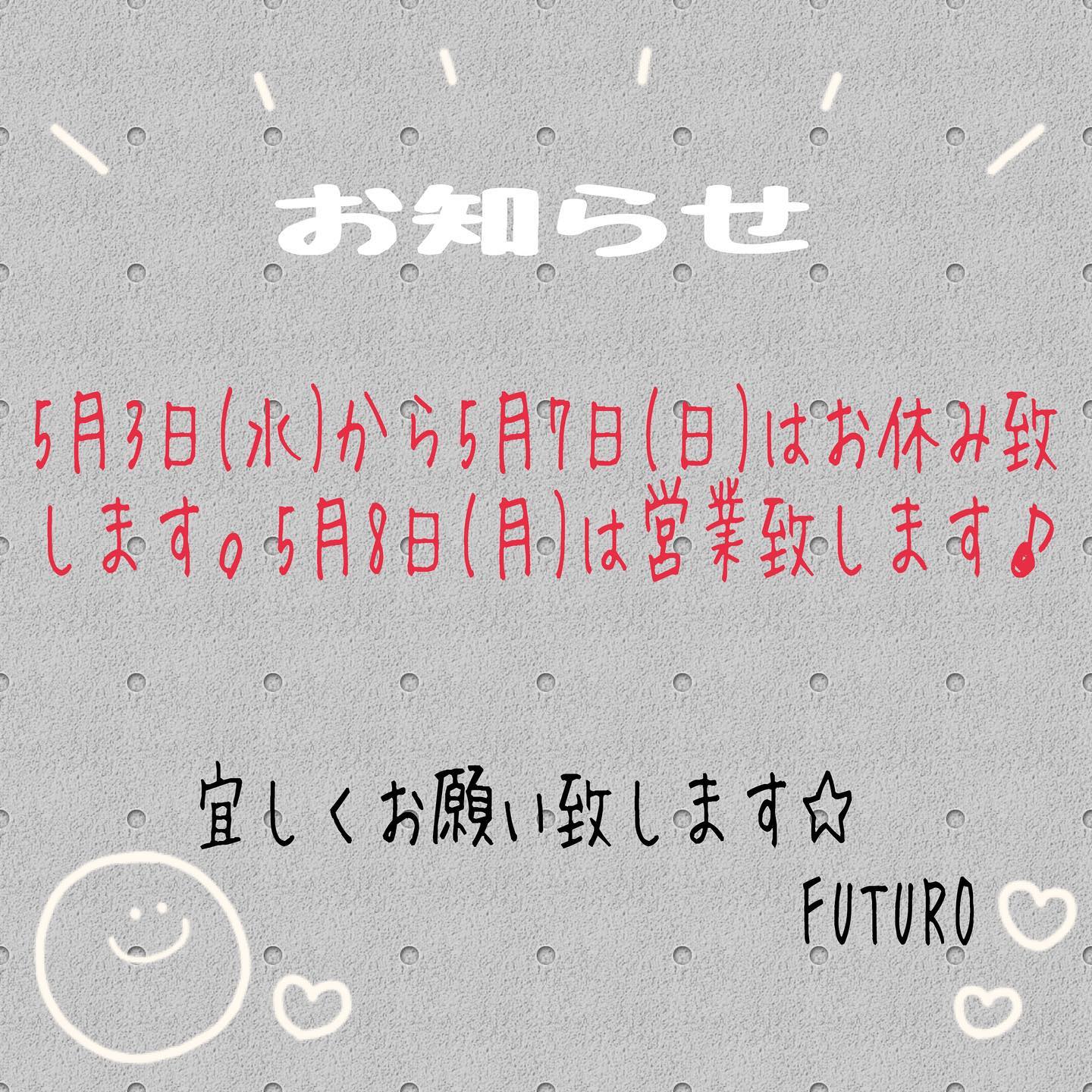 せっかくの連休、ストレスなく過ごせるといいですね〜。 #futuro#セレクトショップ#ゴールデンウィーク #fashion #世田谷区#経堂
