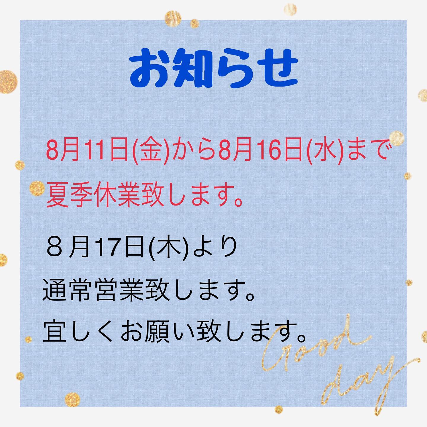 定休日 日曜・月曜