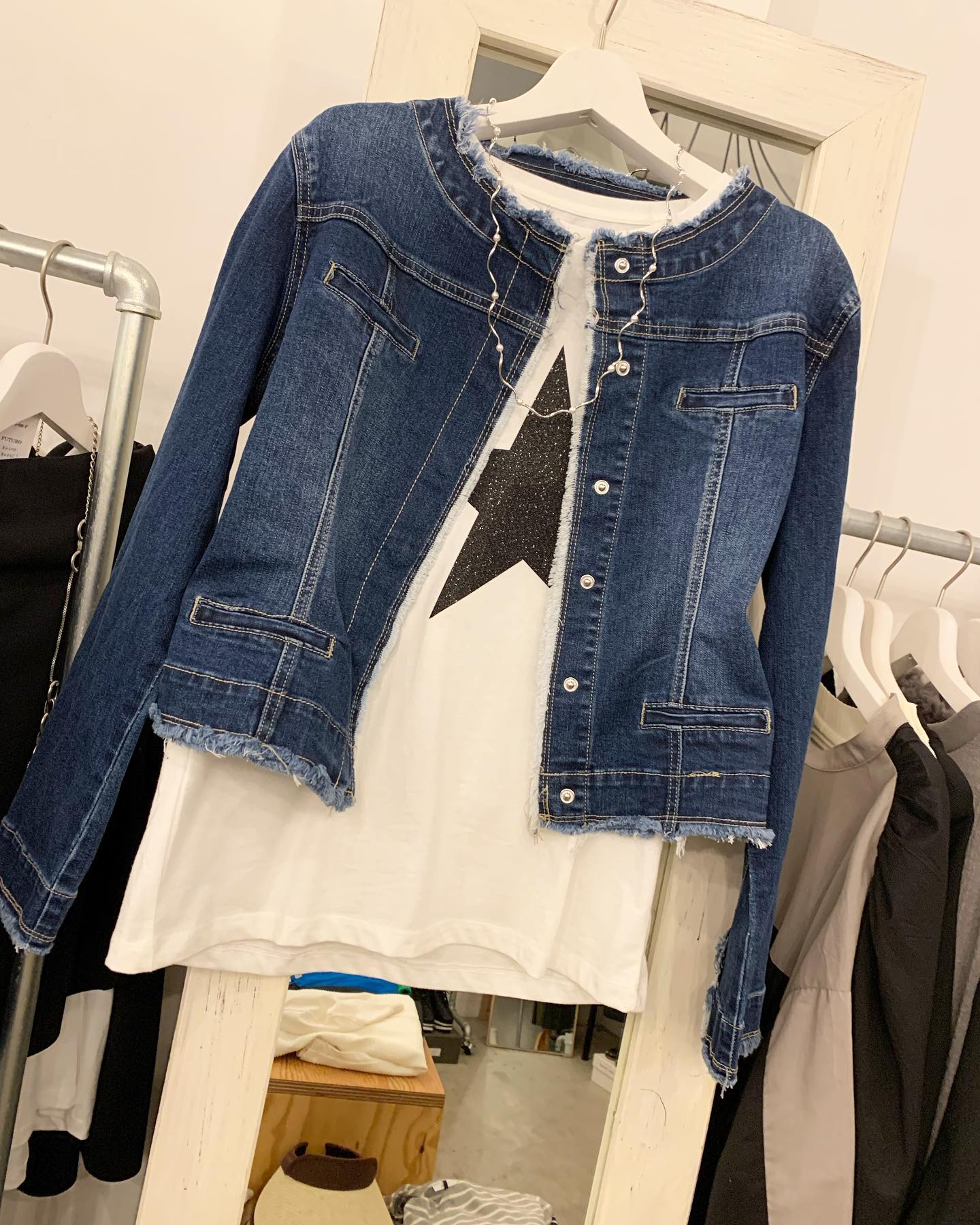 デニム袖シリーズ Tシャツタイプモノトーンかわいいです。 #futuro#ootd#outfit #コーデ#fashion #italy#セレクトショップ#インポートセレクトショップ#世田谷区#経堂#すずらん通り