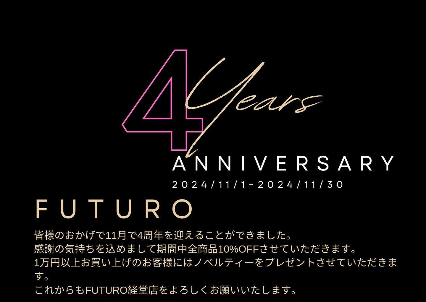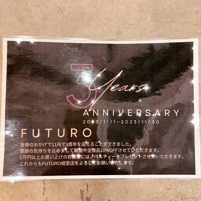 お陰様で4周年を迎えることができました! ありがとうございます😭 今日よりfairスタート❗️ ご来店お待ちしております☺️ #futuro#ootd#outfit #セレクトショップ#インポートセレクトショップ#インポートファッション#世田谷区#経堂#カジュアルスタイル